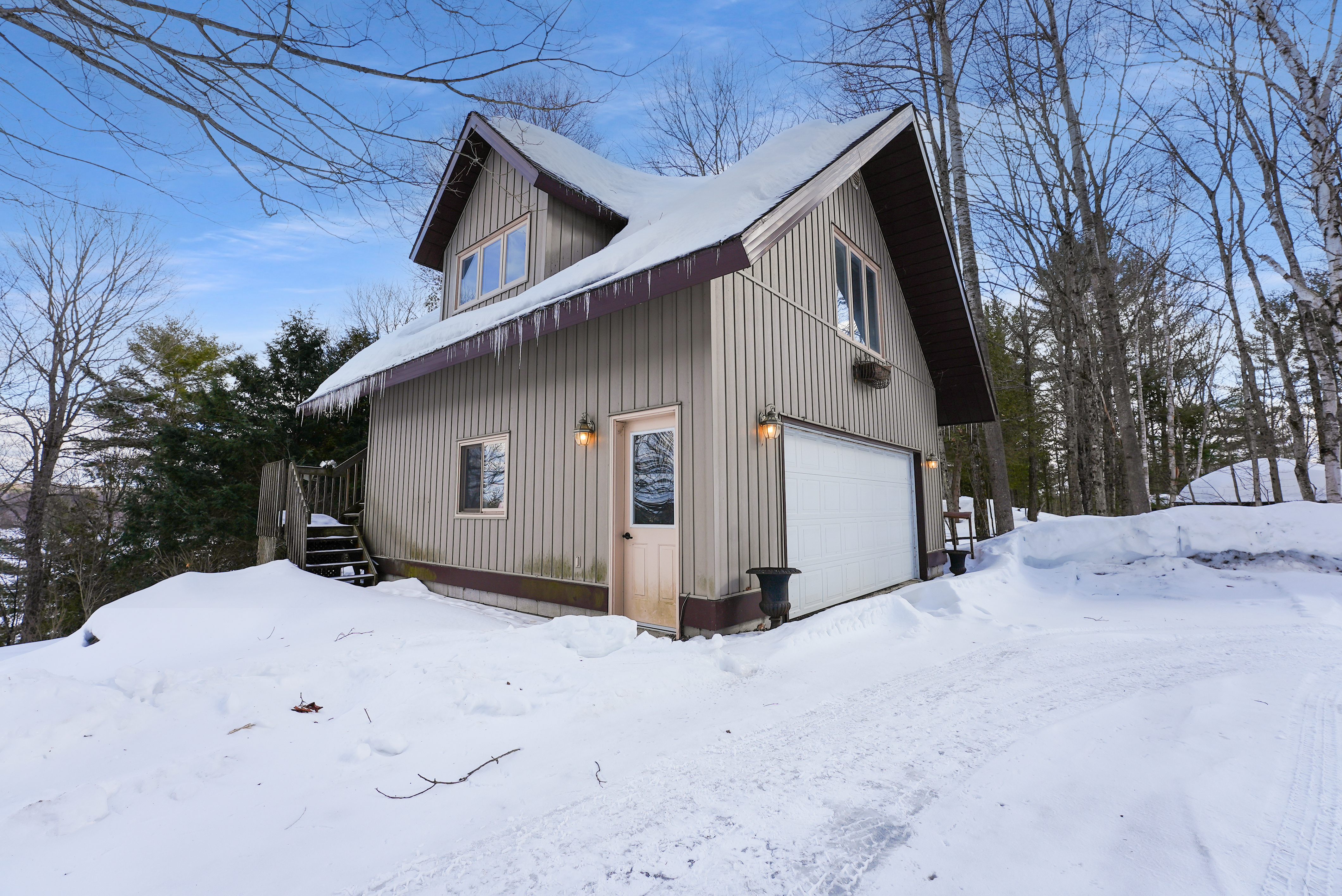 Enjoy stunning sunrise views from this 3-bedroom, 1.5-bathroom home with additional living space above the detached garage, complete with a full bathroom. Situated on a 1.6-acre lot with plenty of usable yard space both at the house and down by the dock, this property offers 164 feet of clean, rocky shoreline on sought-after Kashagawigamog Lake.