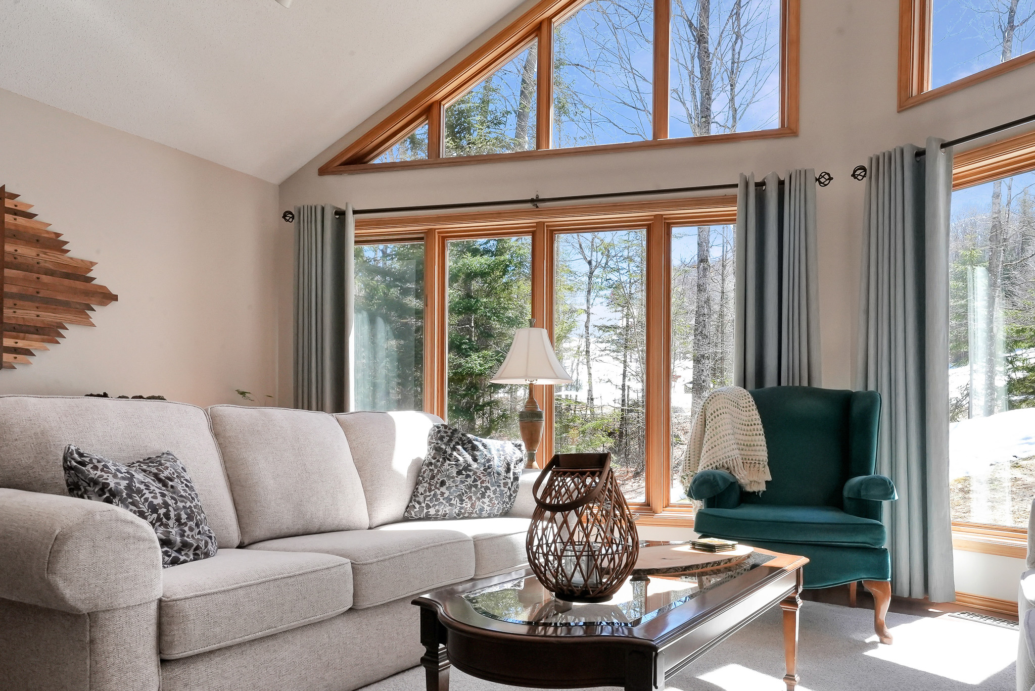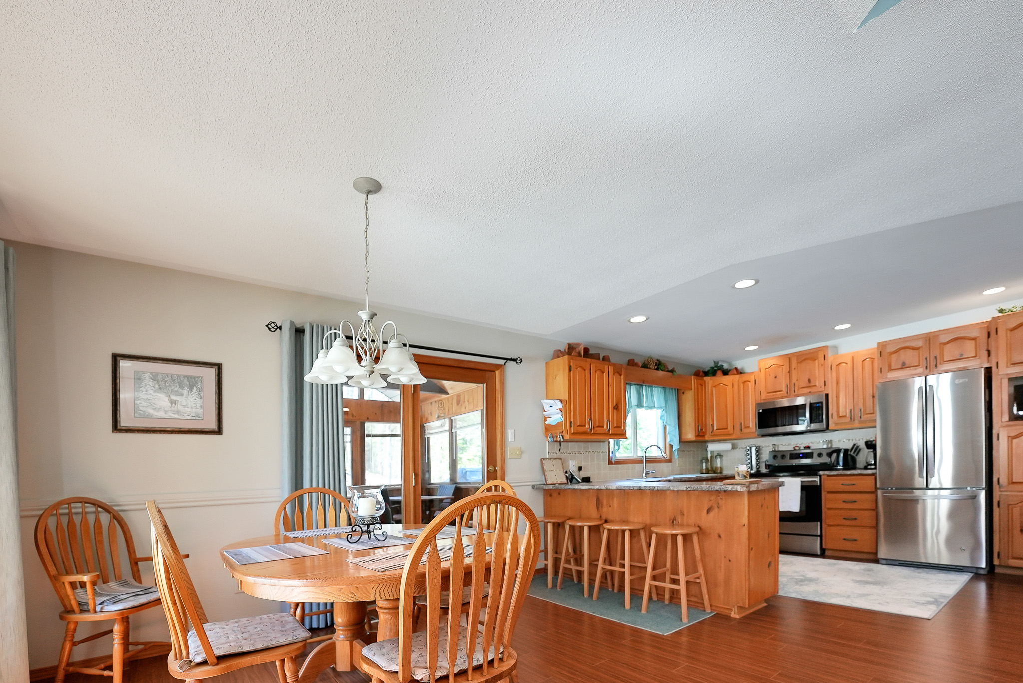 This beautifully crafted chalet-style home is ideally located just 10 minutes from Haliburton and only moments from the heart of Eagle Lake Village. Enjoy the convenience of nearby amenities including Eagle Lake Country market, a local church, and a public beach with a boat launch giving access to both Eagle and Moose Lake. Thoughtfully designed, this 4-bedroom, 2-bathroom raised bungalow offers 1,370 square feet of inviting living space. The open-concept layout features a stunning cathedral-ceiling living room with floor-to-ceiling windows, a spacious dining area, and a well-appointed kitchen that opens onto a large screened room overlooking the trees & tiered lot. Step outside to enjoy side and back deck, perfect for outdoor relaxation or entertaining.