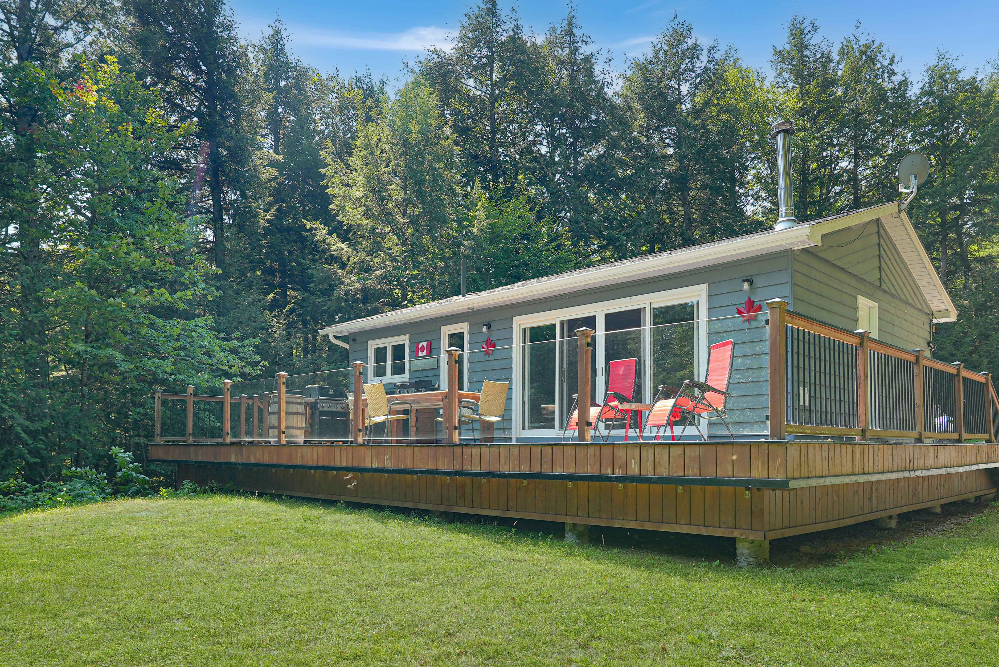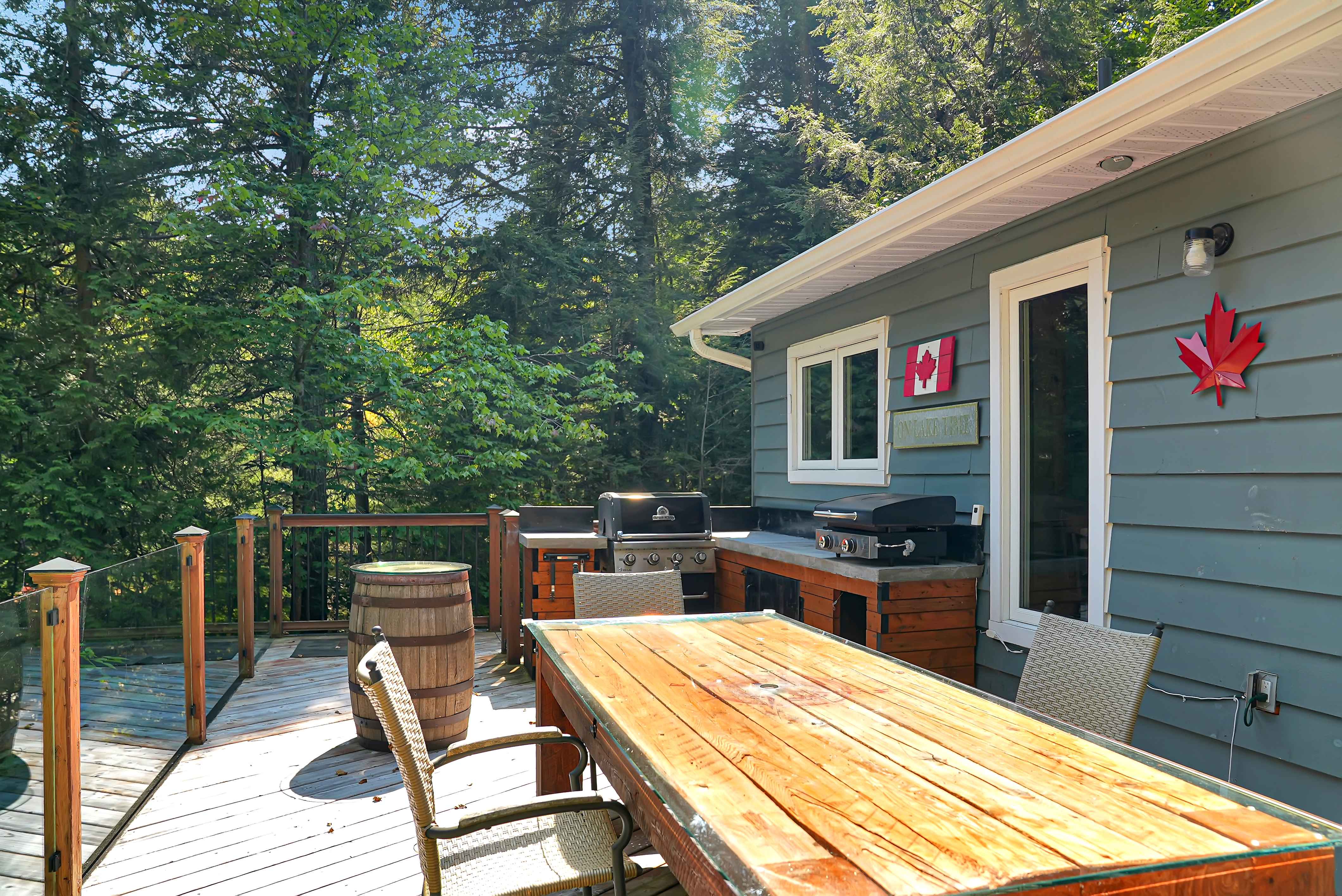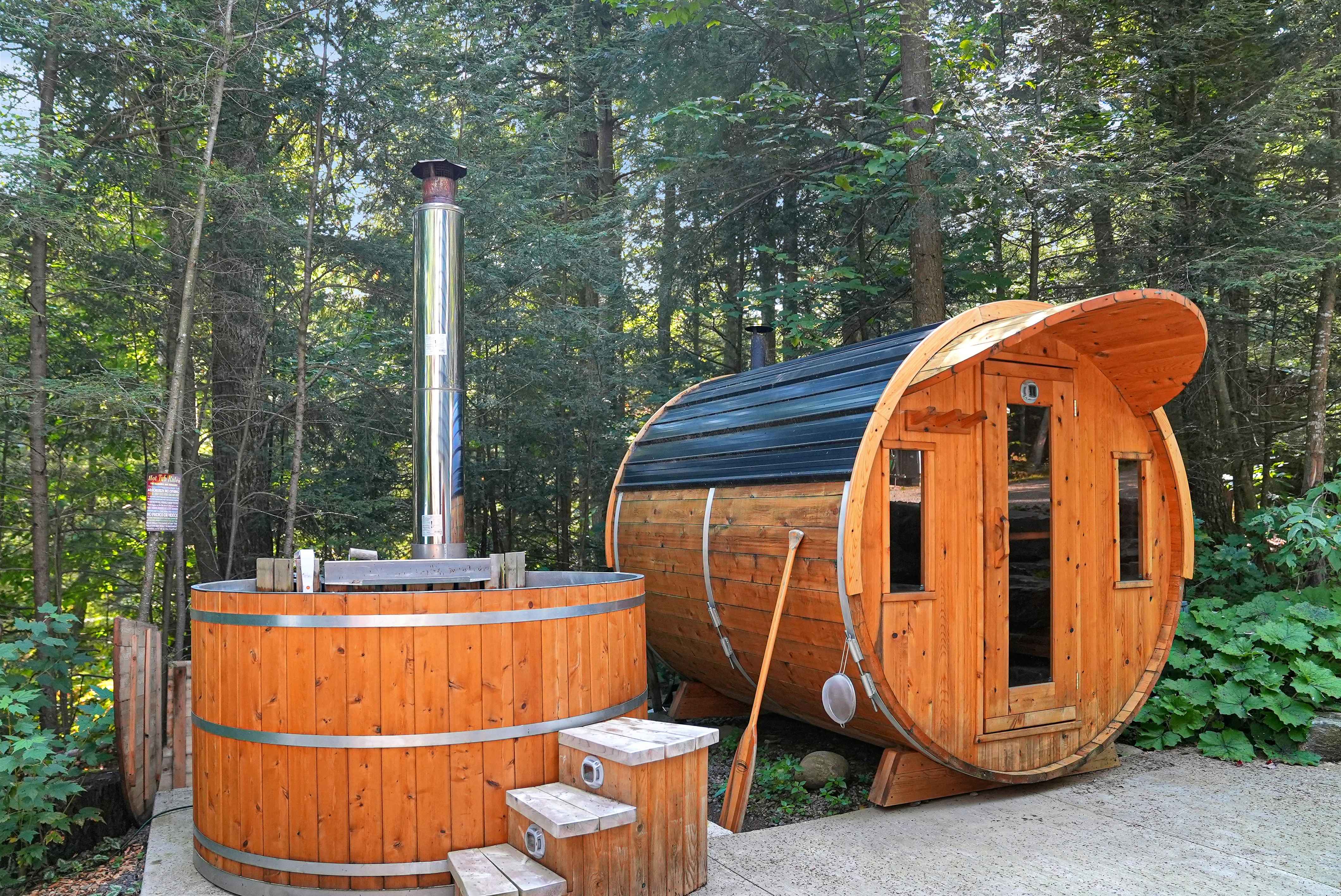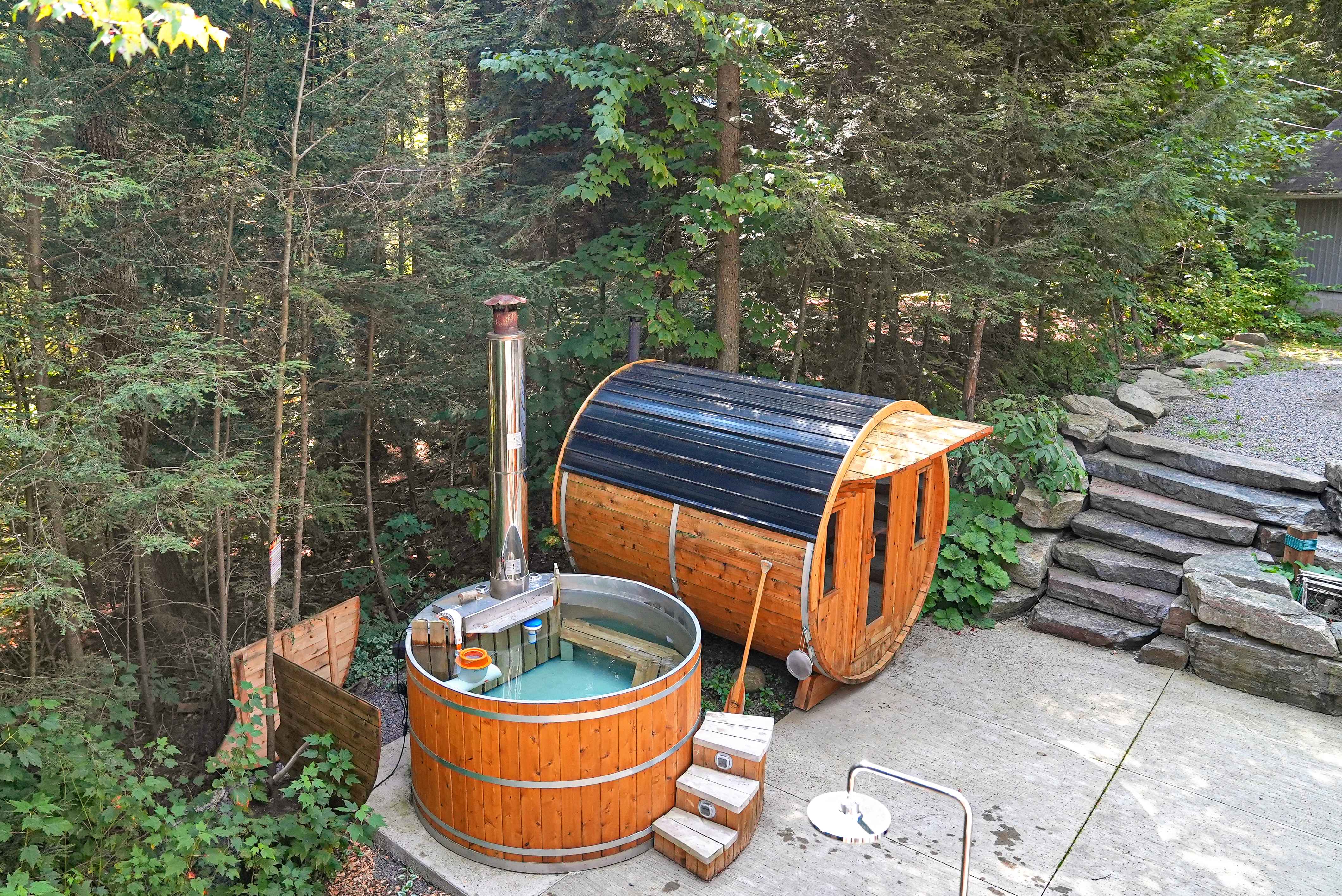 Surrounded by snowmobile and ATV trails, including the Haliburton OFSC snowmobile trail just 5 minutes away, this location is a dream for outdoor enthusiasts. Relax after a day of adventure in the outdoor sauna, hot tub, or outdoor shower—adding a touch of luxury to your lakeside retreat.