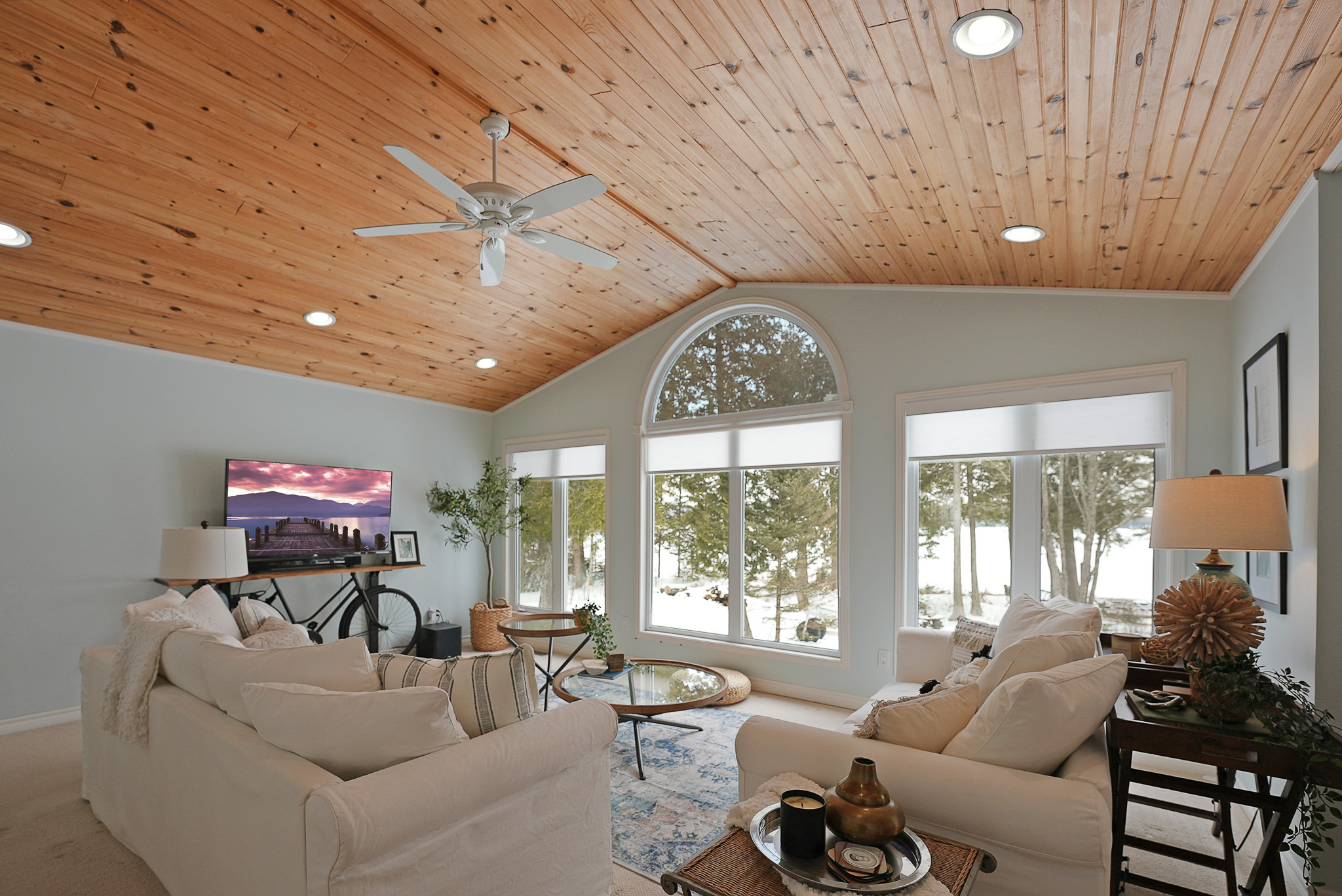 Step inside to a thoughtfully designed layout featuring a bright and airy sunroom, ideal for soaking in the breathtaking lake views. The spacious detached garage provides ample storage for vehicles, boats, and outdoor gear.