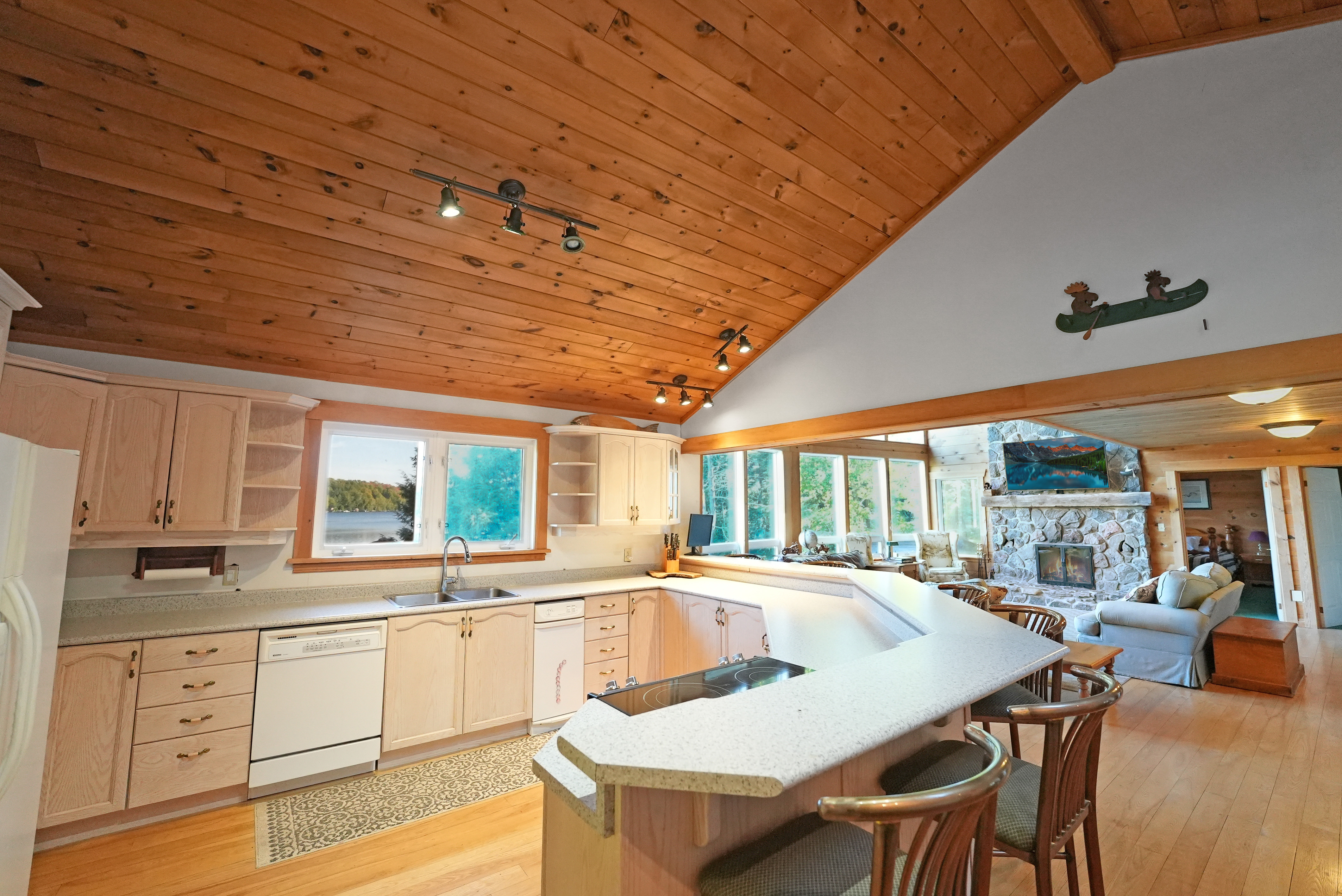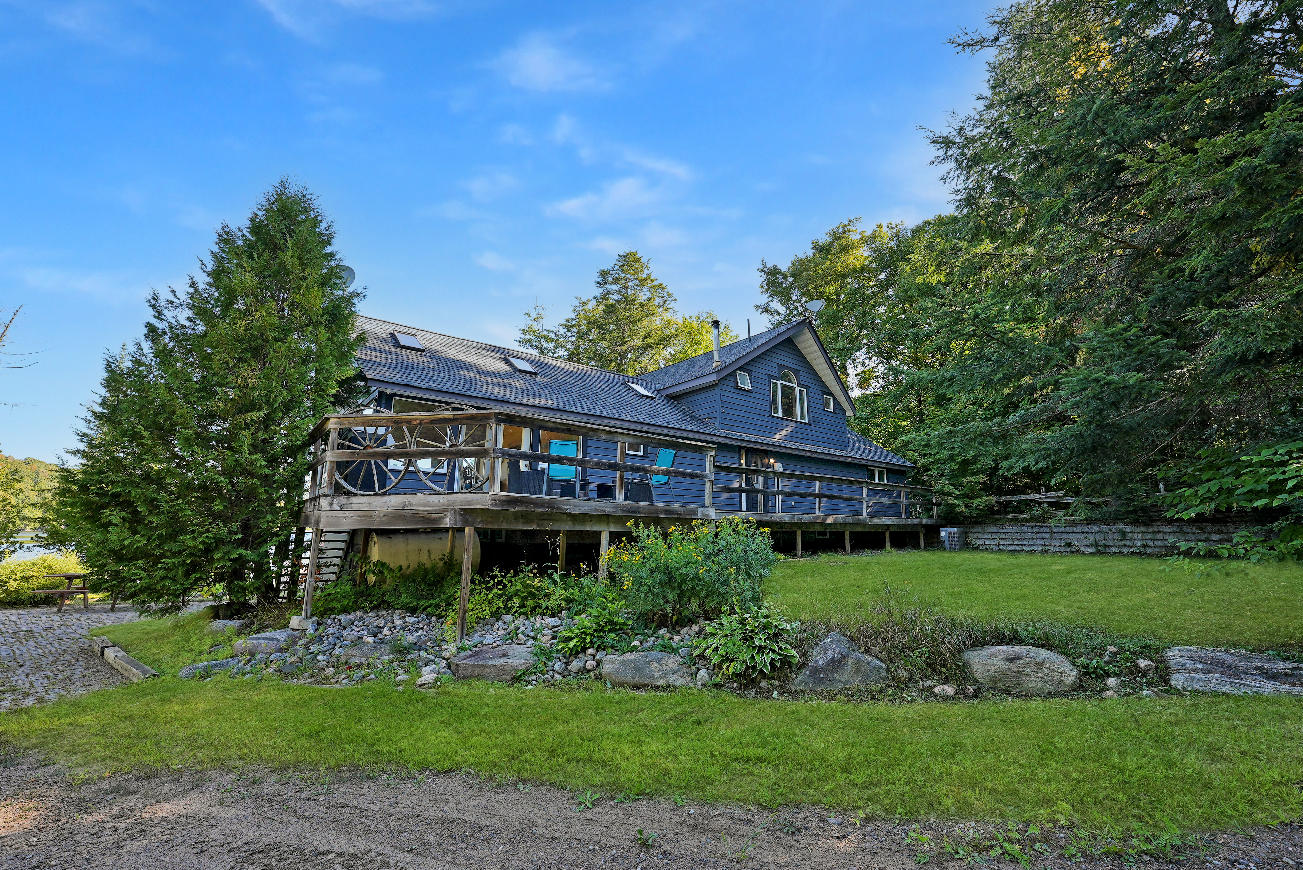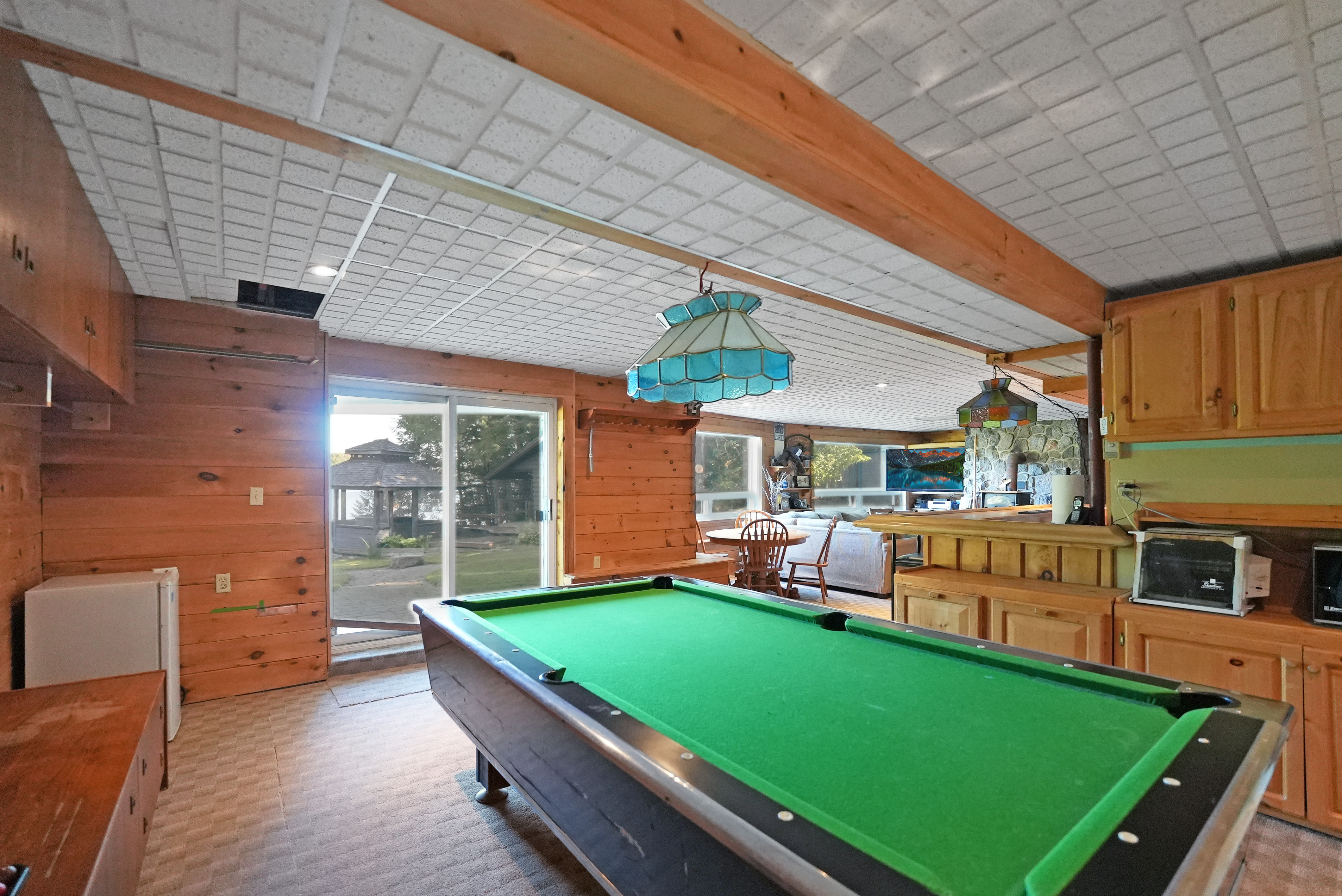 Private 4-Bedroom Cottage Retreat with Loft, Waterfront & Heated Garage! Welcome to your dream cottage escape- a stunning, fully-equipped 4-bedroom getaway offering the perfect blend of rustic charm and comfort. Nestled on a private, gradual sloping lot with clean, deep water and a sandy beach area, this property is ideal for swimming, boating, and creating lifelong memories. Inside, you'll find three spacious levels of living space, including a cozy loft area, perfect for reading, relaxing, or extra guest space. The bright, open-concept living room features large windows that flood the space with natural light and a beautiful stone fireplace to gather around on cool evenings. Enjoy indoor-outdoor living in the expansive sunroom, perfect for dining or relaxing while surrounded by nature. The fully finished basement offers a large recreation room complete with a pool table and wet bar - an entertainers dream! =Bonus features include a massive 32 x 32 heated garage with loft space above, ideal for storage, a workshop, or a place to park your toys! Whether you're seeking a peaceful family retreat or a year-round home/cottage, this property checks all the boxes!