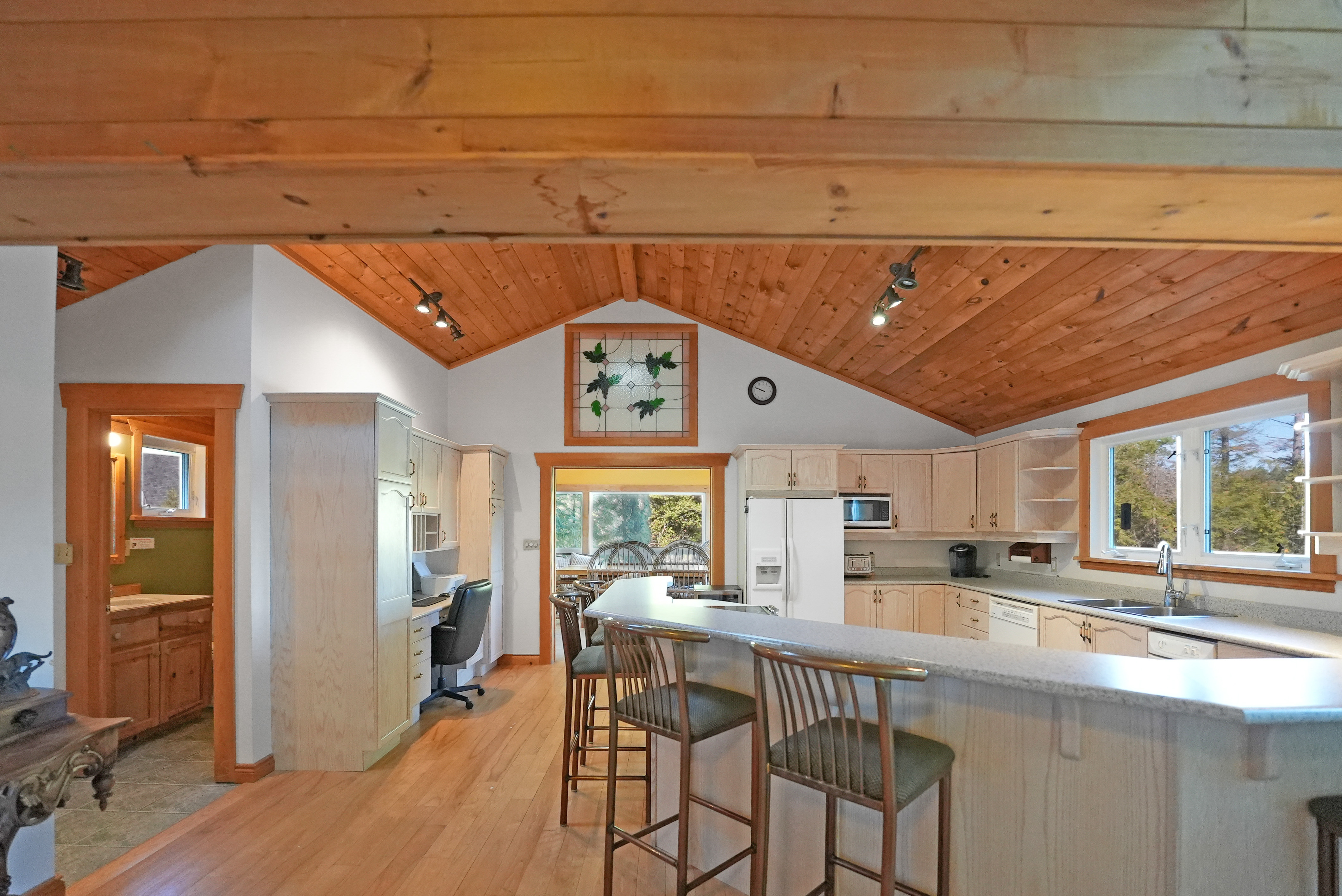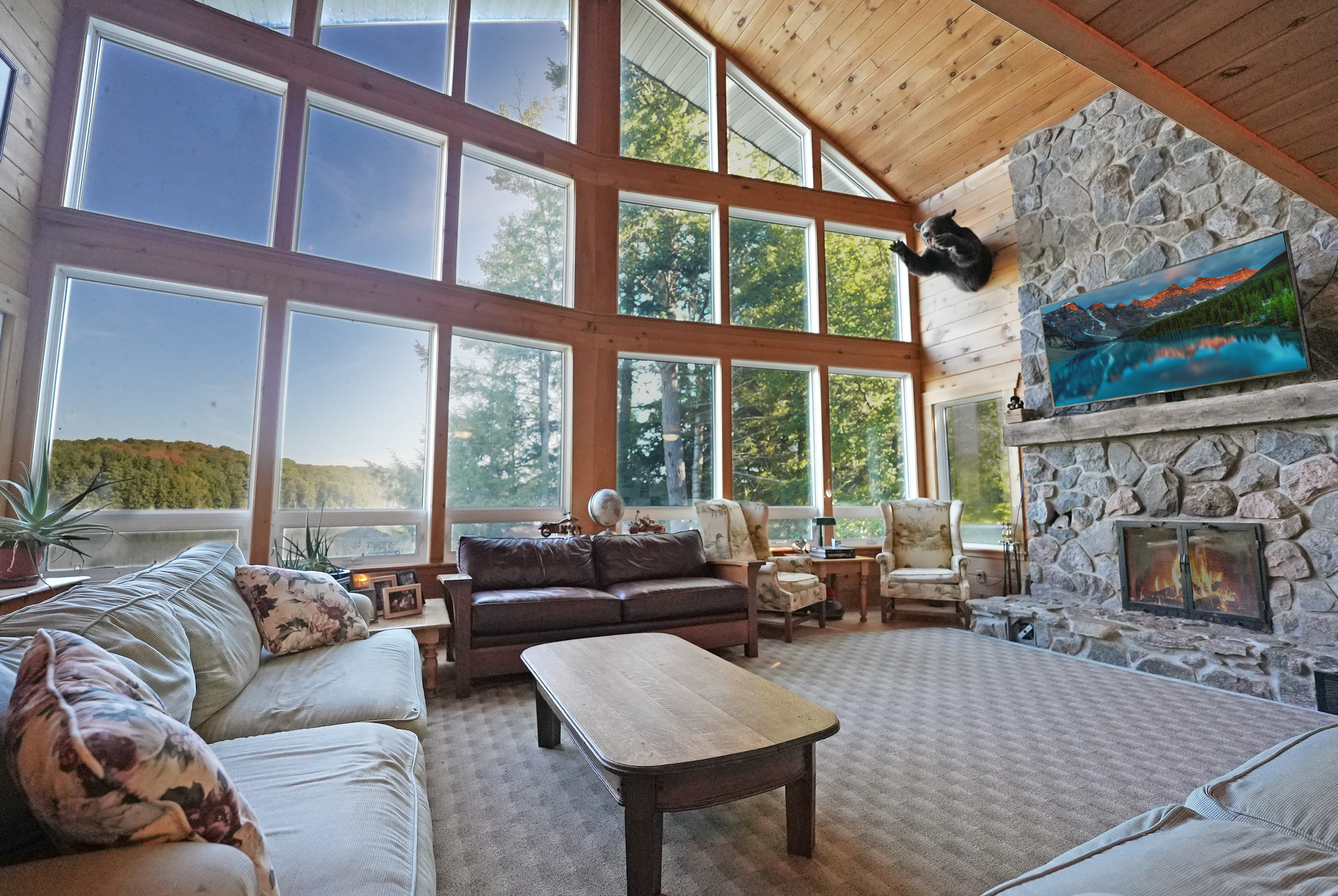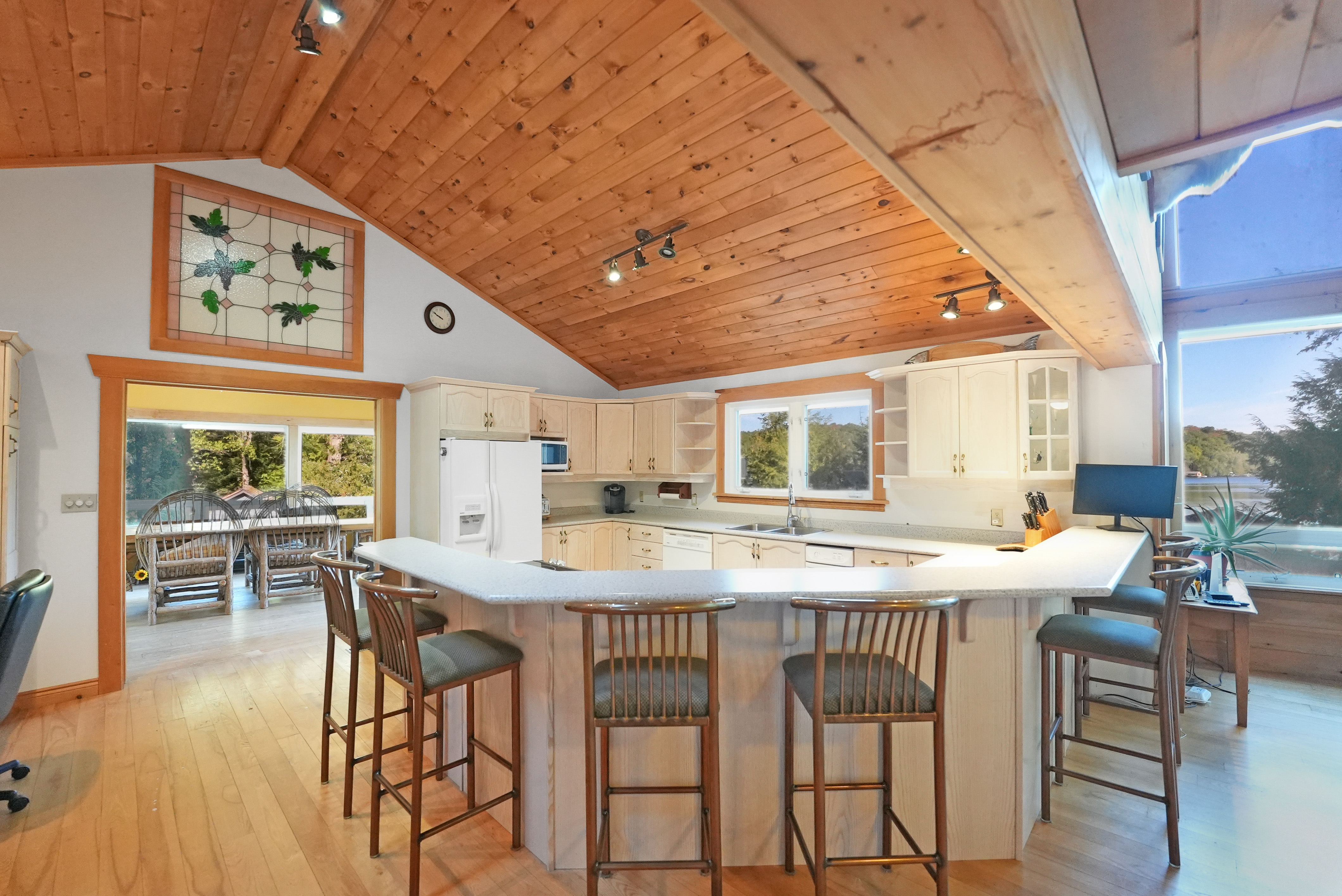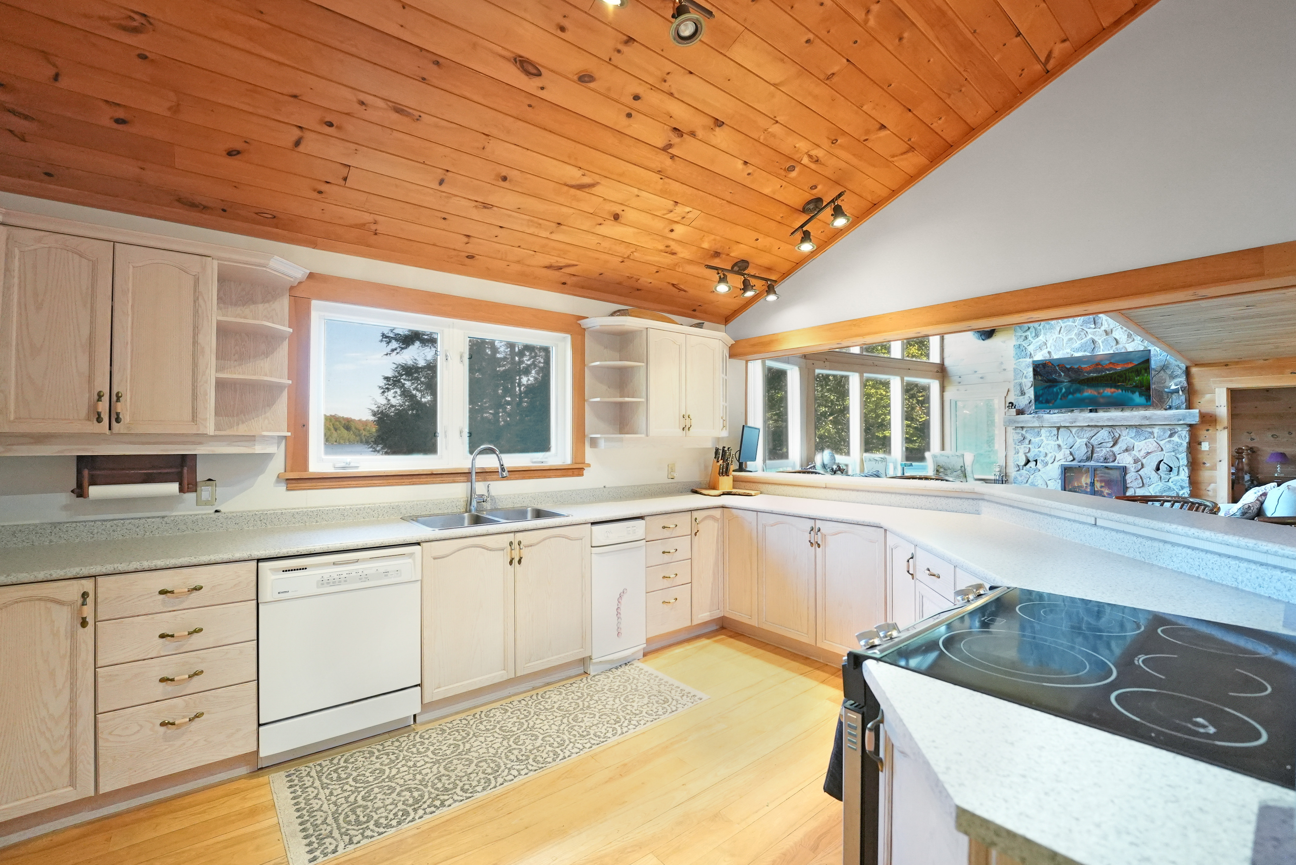 Private 4-Bedroom Cottage Retreat with Loft, Waterfront & Heated Garage! Welcome to your dream cottage escape- a stunning, fully-equipped 4-bedroom getaway offering the perfect blend of rustic charm and comfort. Nestled on a private, gradual sloping lot with clean, deep water and a sandy beach area, this property is ideal for swimming, boating, and creating lifelong memories. Inside, you'll find three spacious levels of living space, including a cozy loft area, perfect for reading, relaxing, or extra guest space. The bright, open-concept living room features large windows that flood the space with natural light and a beautiful stone fireplace to gather around on cool evenings. Enjoy indoor-outdoor living in the expansive sunroom, perfect for dining or relaxing while surrounded by nature. The fully finished basement offers a large recreation room complete with a pool table and wet bar - an entertainers dream! =Bonus features include a massive 32 x 32 heated garage with loft space above, ideal for storage, a workshop, or a place to park your toys! Whether you're seeking a peaceful family retreat or a year-round home/cottage, this property checks all the boxes!