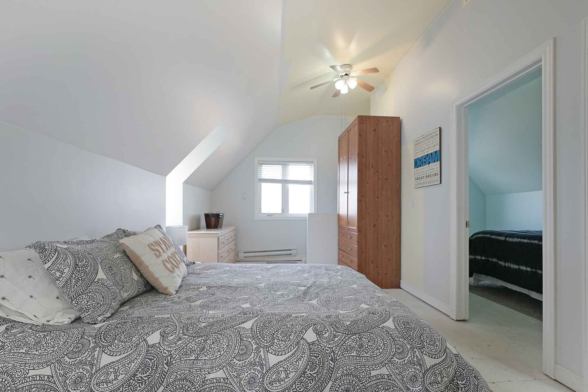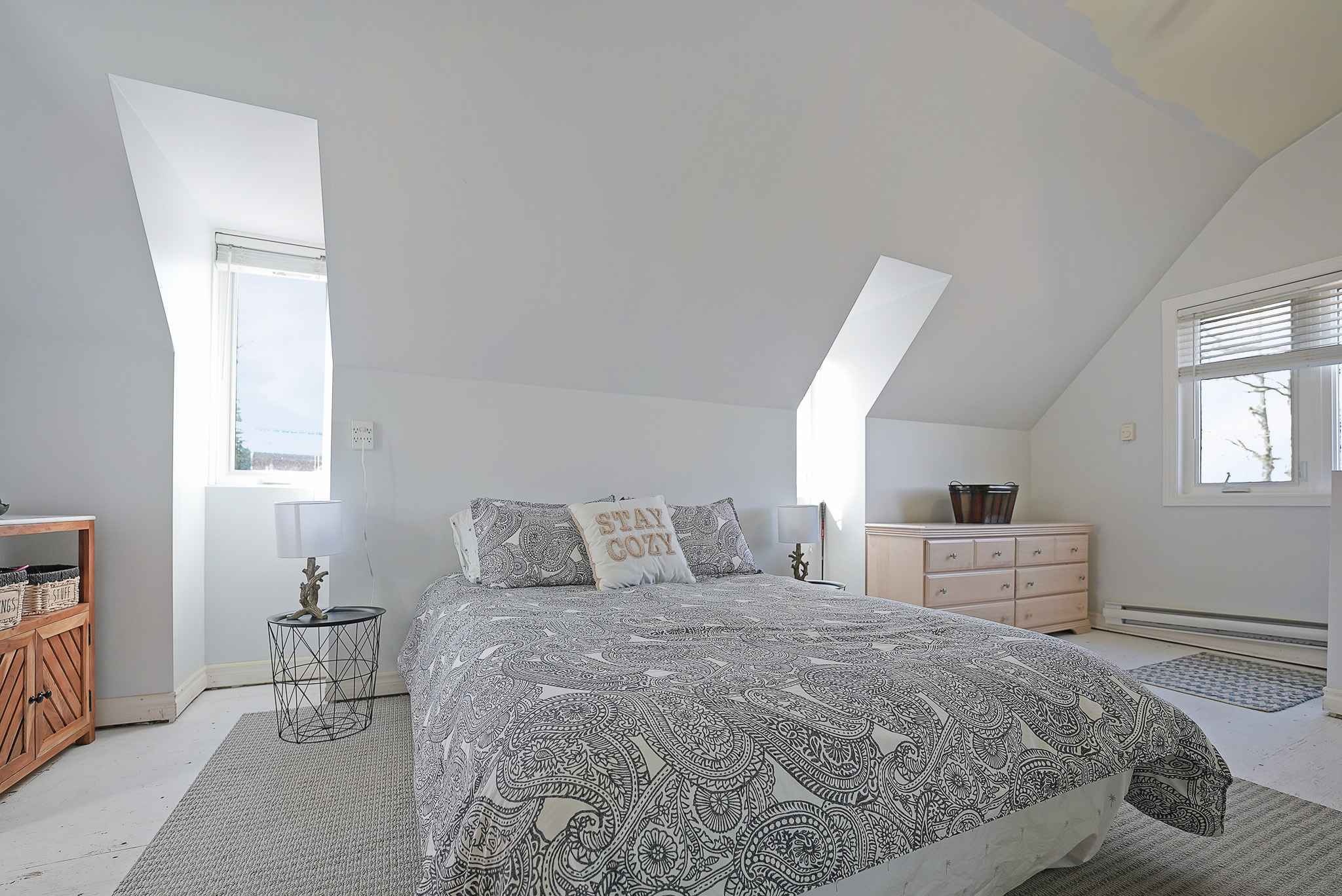 The charming cottage is thoughtfully set back from the lakefront, while still enjoying stunning water views—especially from the bright, lake-facing sunroom. Inside, you’ll find an inviting, open-concept layout combining the living, dining, and kitchen areas, ideal for both quiet evenings and lively gatherings. All bedrooms are located upstairs for added comfort and separation.