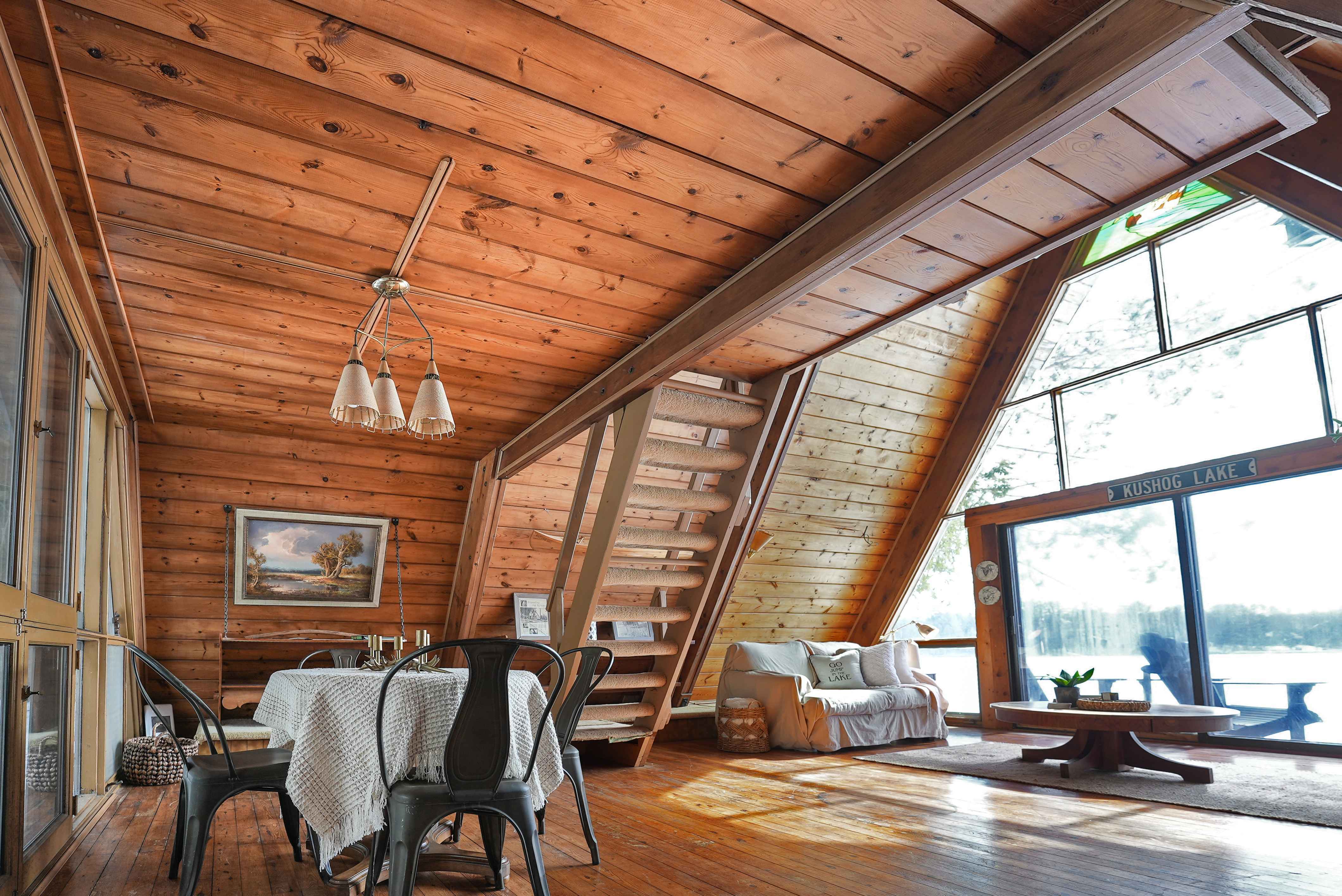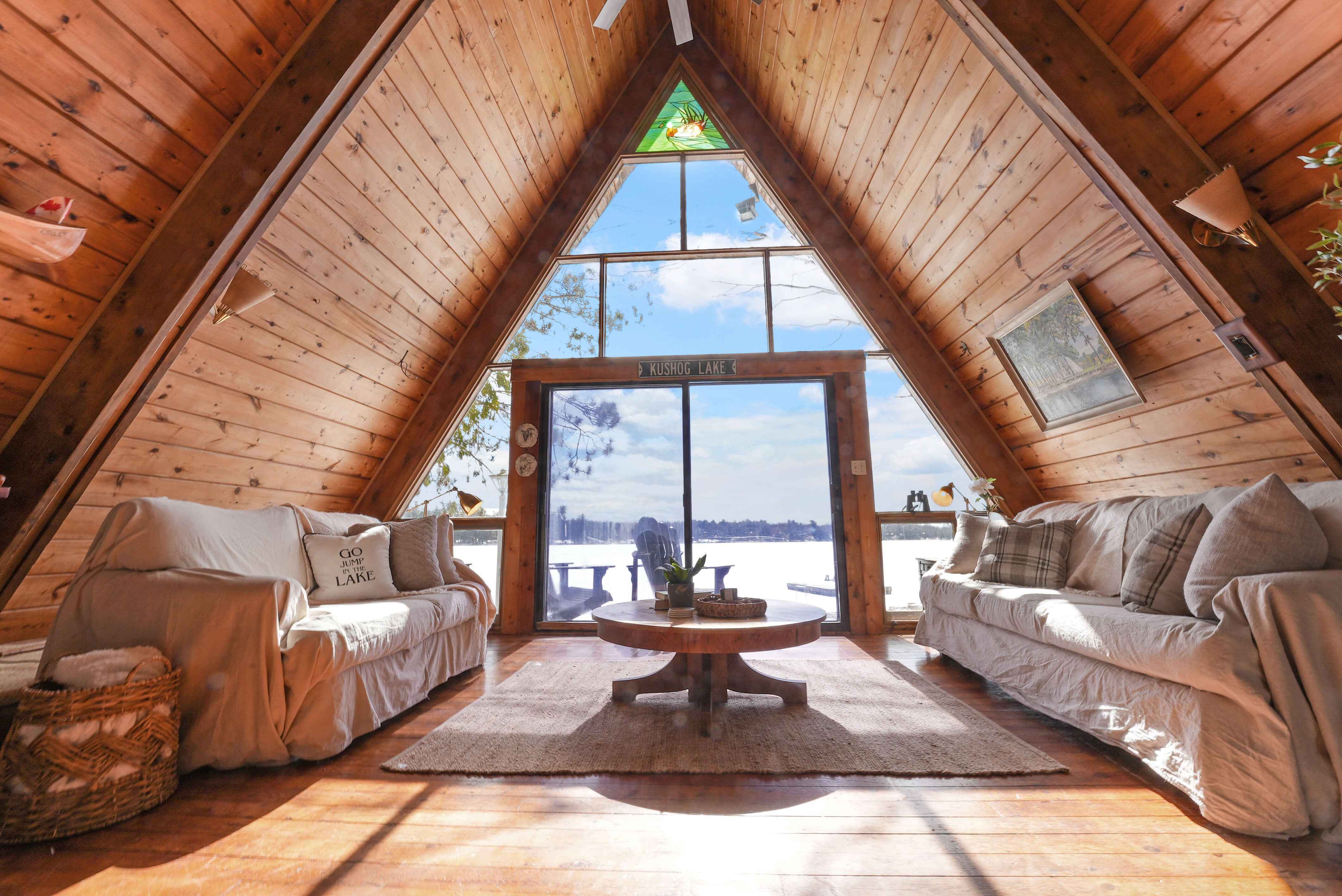 Experience your slice of paradise on Kushog Lake, where tranquility takes the reins on a premium flat southern-facing lot boasting 286 feet of pristine frontage. This exclusive property features an iconic A-frame cottage just steps from the lakeshore that graced the pages of magazines in 1964, showcasing timeless design. The main A-frame cottage boasts three bedrooms and two bathrooms, blending rustic charm with contemporary elegance. Its great room and loft areas offer breathtaking views of the lake through a stunning wall of glass, creating a seamless connection with the natural surroundings. But that's not all—this property also includes a full second cottage with three bedrooms and one bathroom plus a kitchen, providing ample space for guests or extended family members. Additionally, there's an inviting bunkhouse, perfect for accommodating even more visitors or creating a cozy retreat. Outdoor enthusiasts will delight in the rare well-maintained boathouse, offering easy access to water activities & toys, and a detached garage provides additional storage space for all your recreational gear. The flat, expansive lot allows for complete privacy, allowing you to unwind and enjoy the serenity of lakefront living. For those who love staying active, there's an opportunity to update the tennis court for on-site matches or indulge in the increasingly popular sport of pickleball, or add sand for beach volleyball. Whether you're a seasoned player or just starting, the court provides endless hours of fun and fitness. Located only 2 hours from the GTA, this property offers a convenient escape from the city without sacrificing comfort or convenience. Whether you choose to enjoy this compound as it is or envision building your future dream home, the possibilities are endless in this idyllic waterfront retreat. Live your best life surrounded by nature's beauty and unparalleled luxury at Kushog Lake.
