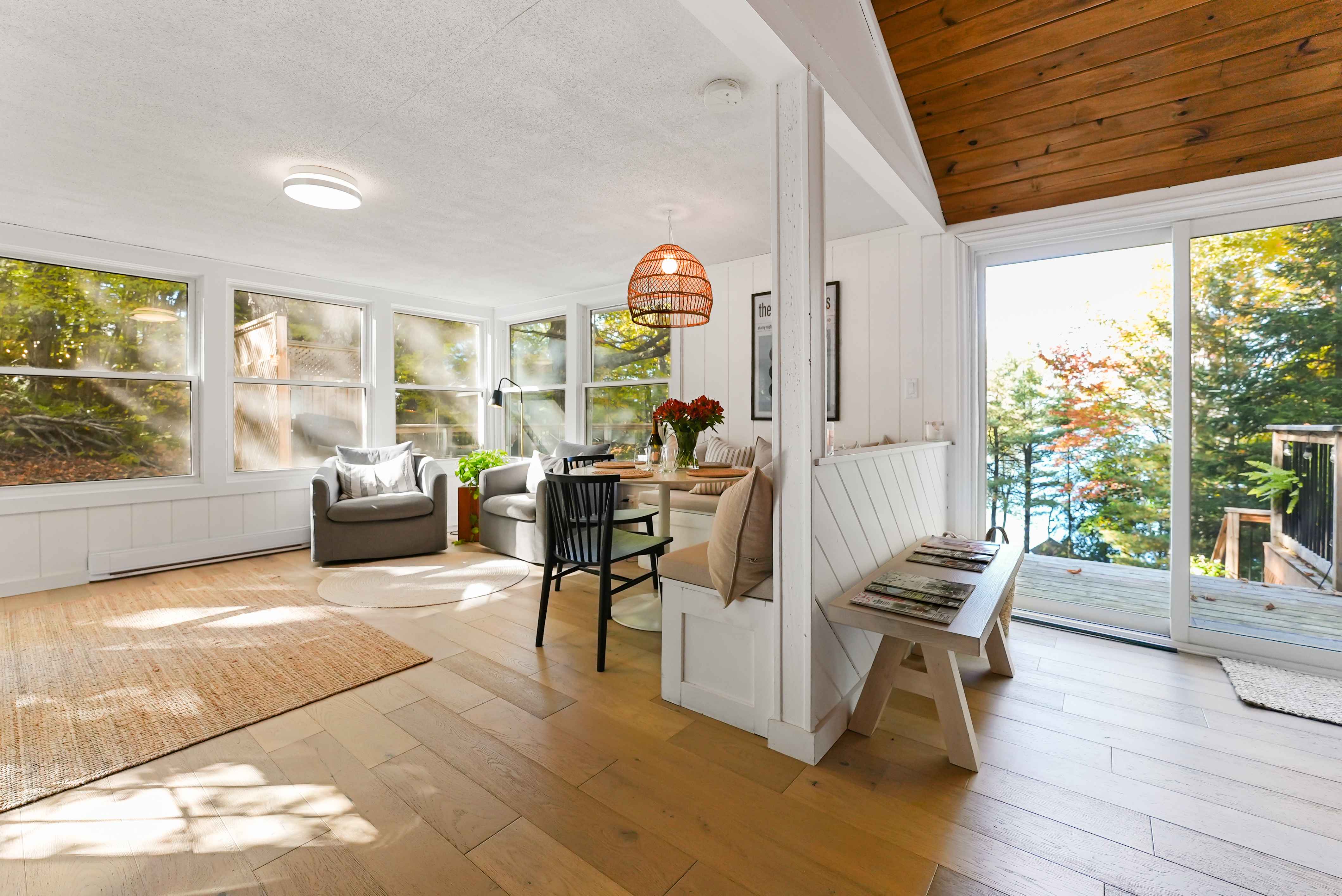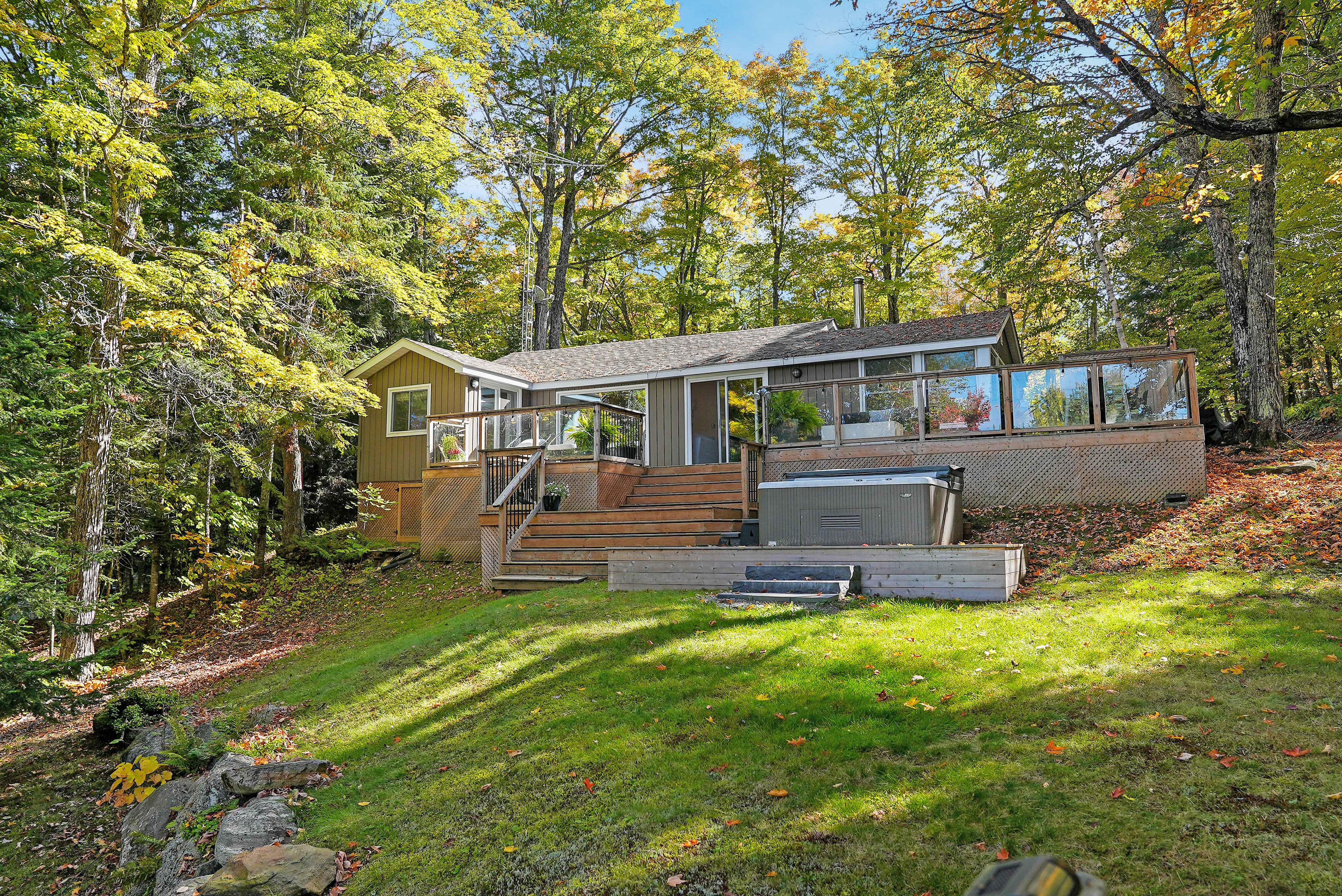 Escape to your own private oasis with this charming 3-bedroom cottage. Recently renovated and including all furnishings, this turn-key property is ready for you to move in and start enjoying the cottage lifestyle for all four seasons. Step inside and be greeted by the spacious and bright dining room with new flooring throughout the cottage, and a wood-burning stove, featuring beautiful windows that offer panoramic views of the surrounding nature. The large deck, accessible from the dining room, is just one of many decks & perfect for entertaining guests or simply relaxing with a book while taking in the serene surroundings. The open-concept living area boasts vaulted ceilings and is open to the kitchen for hosting a gathering with friends and family, this living area is the heart of the cottage. The pride of ownership is evident throughout, with meticulous renovations, and tasteful decor that will appeal to any taste. The attention to detail is remarkable, making this cottage truly special. Enjoy the privacy and tranquility of this property with lots of parking for guests, a big lake view, and stunning summer sunsets to admire. The deepwater off the dock is perfect for swimming, boating, or fishing, while the clean rocky shoreline adds to the natural beauty of the surroundings. For ultimate relaxation, indulge in the lakeside deck and sauna. Unwind after a day of outdoor activities or simply soak up the sun while enjoying the peaceful sounds of nature. The new firepit area adds to the cottage experience, providing additional amenities for your enjoyment. Conveniently located just around the corner from the Marina and the new LCBO outlet. Snowmobile trails winterdance dogsled tours and Sir Sam's Ski & Bike are also nearby, offering year-round recreational opportunities. Haliburton Lake is renowned for its crystal-clear waters and excellent fishing, making it a paradise for outdoor enthusiasts. Whether you're into water sports, hiking, or simply enjoying the beauty of nature, this cottage is the perfect base for all your adventures. Don't miss out on the chance to own this exceptional cottage. With its prime location, stunning views, and high-speed Starlink internet, as well as a good rental history, it's a true gem on Haliburton Lake. Schedule a showing today and start creating memories in this idyllic retreat.