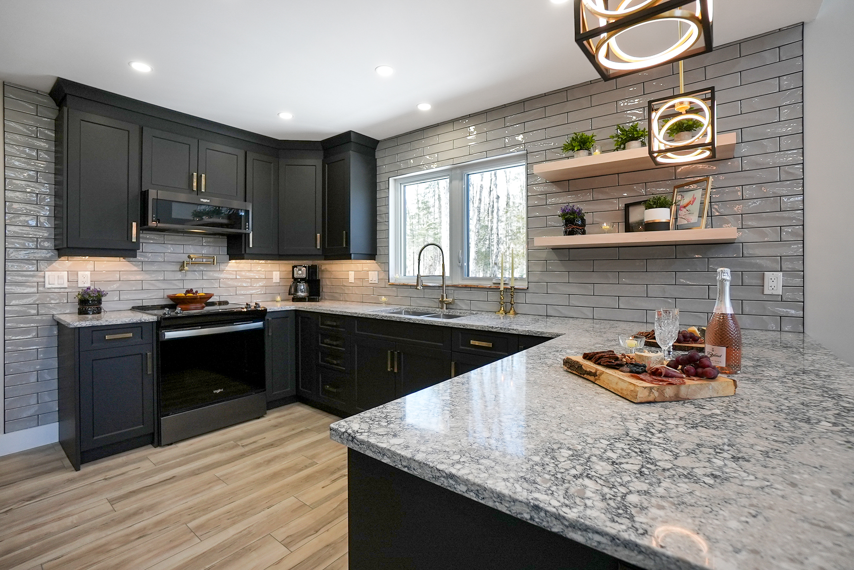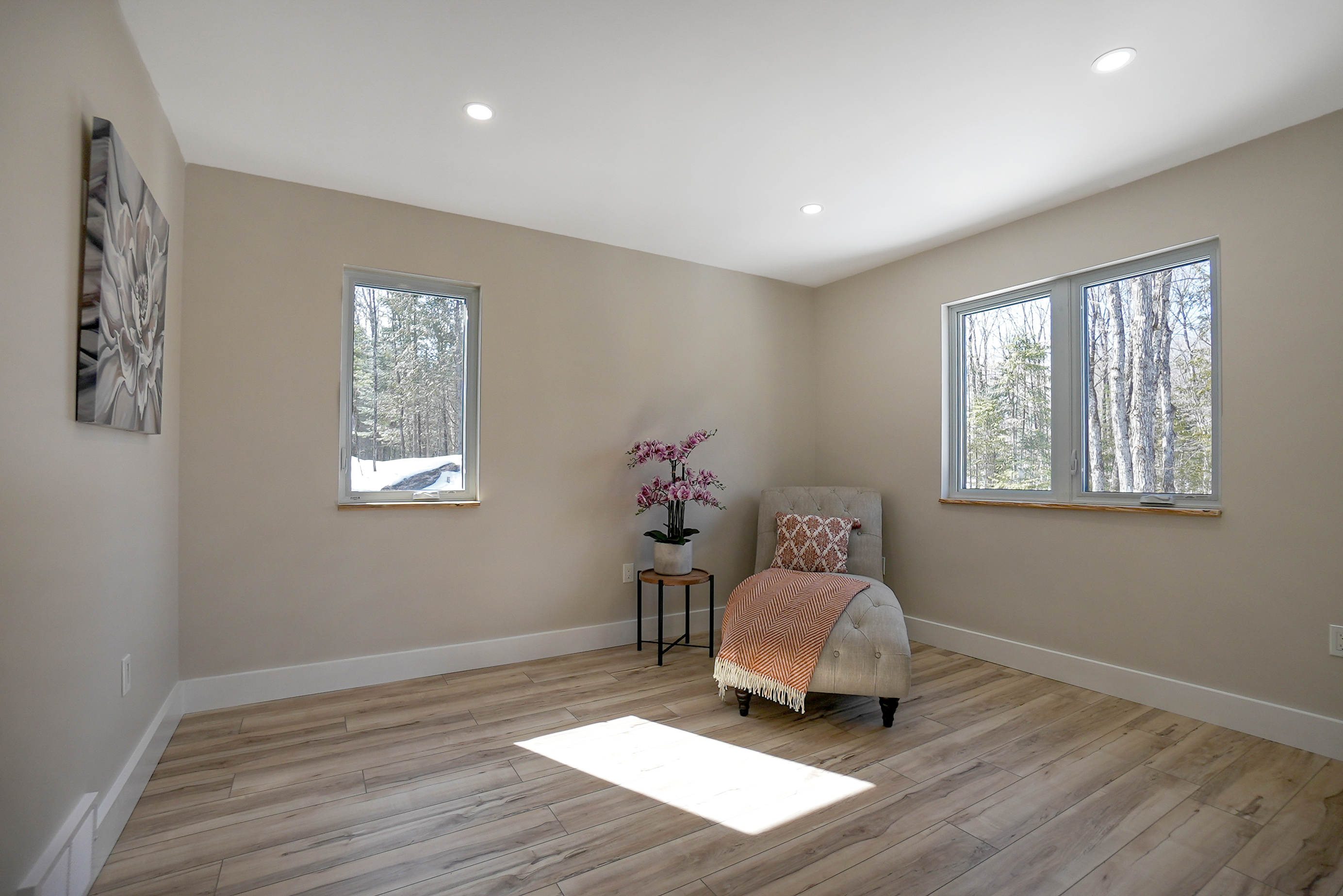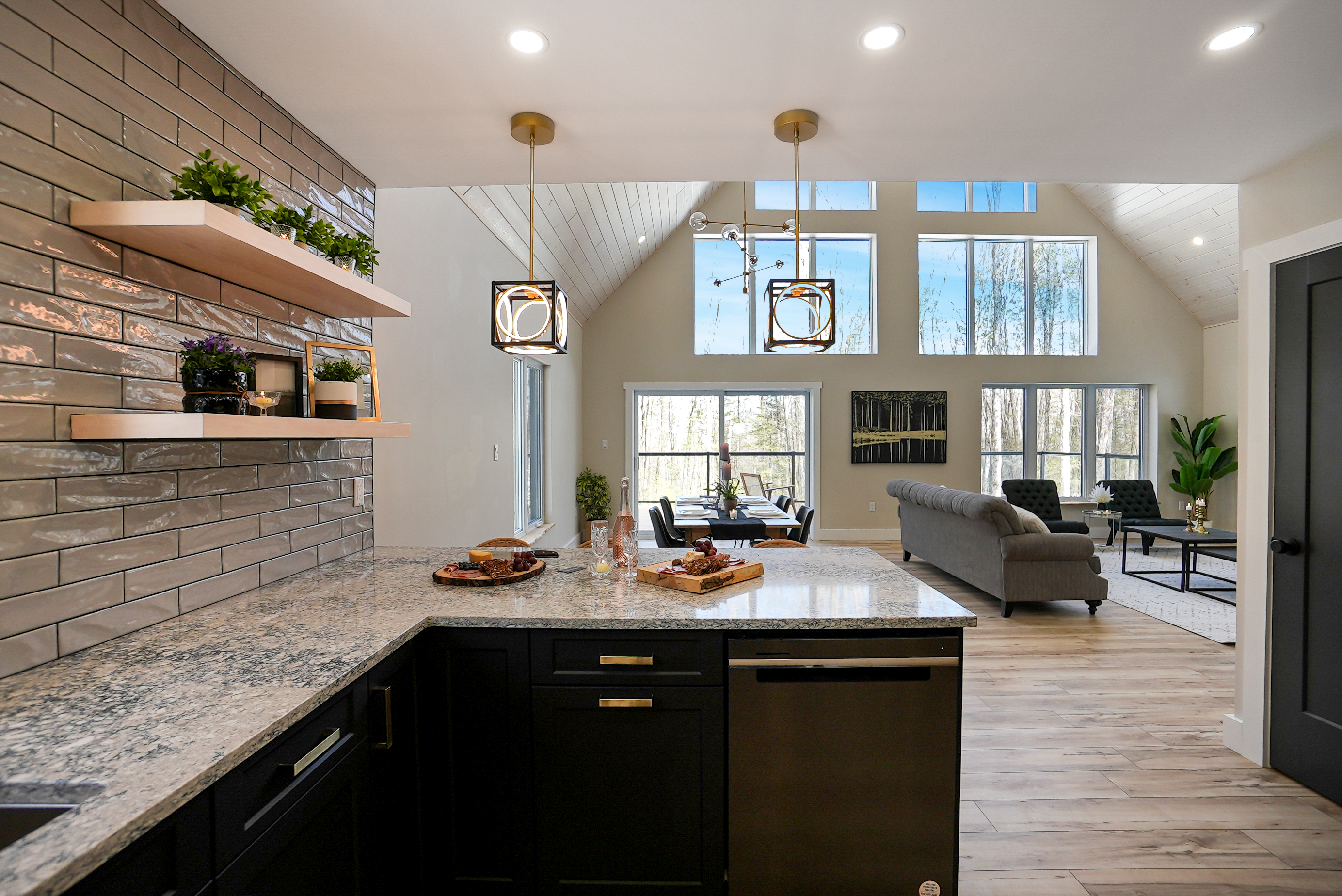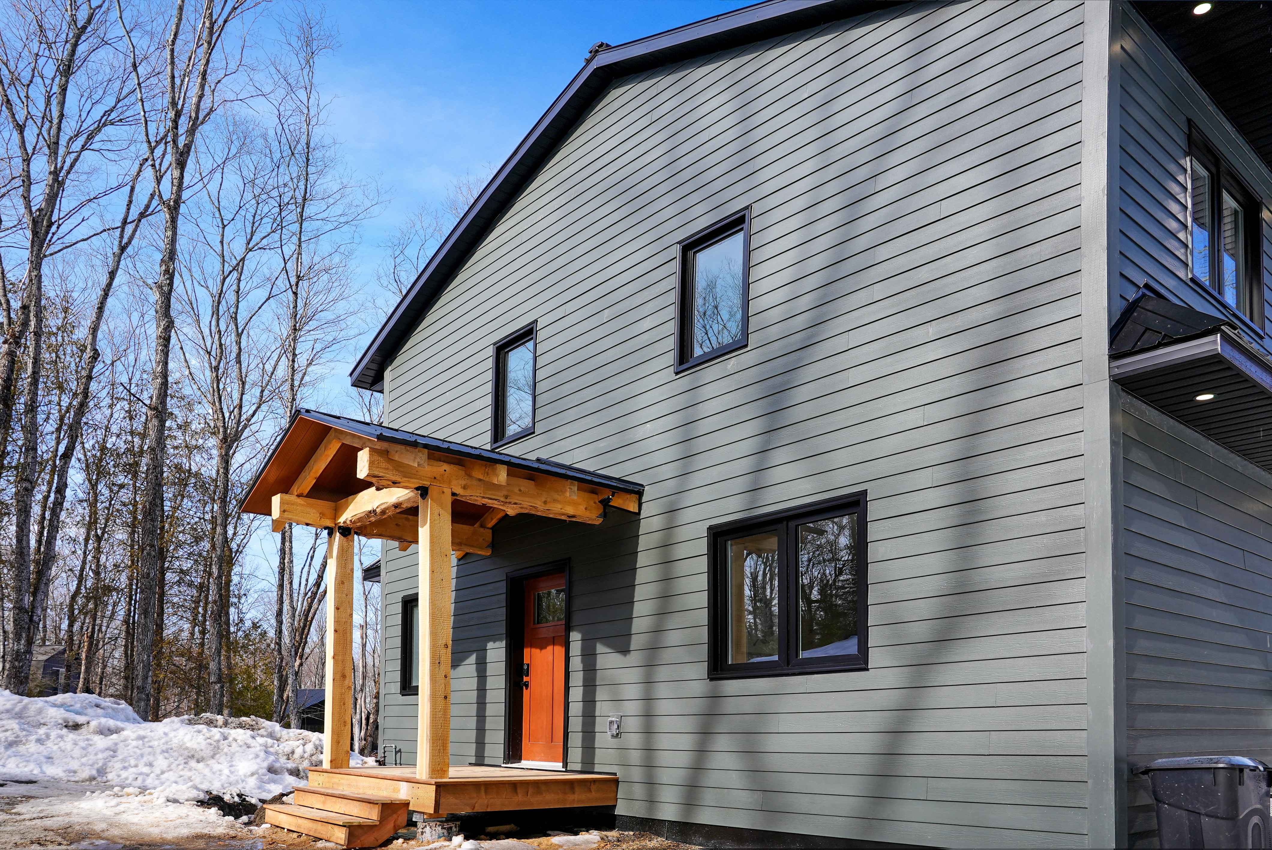 The chalet's spacious and inviting open-concept living area features vaulted 22-foot ceilings, radiant in floor heat, security cameras, air conditioning, a beautiful stone fireplace, and large windows that provide ample natural light and stunning views of the surrounding landscape. The kitchen is a chef's dream, featuring top-of-the-line stainless steel appliances, quartz countertops, and ample cabinetry for storage. The dining area comfortably seats eight and is perfect for hosting family meals and entertaining guests. The four beautifully appointed bedrooms offer comfortable sleeping accommodations. The chalet's three full bathrooms and one half-bath have been meticulously designed with desirable finishes and modern fixtures. Outside, the chalet's spacious deck provides the perfect spot to enjoy the fresh Haliburton Highlands air and take in the beautiful views. The property also features a great 2+acre lot adjacent to a scenic pond.