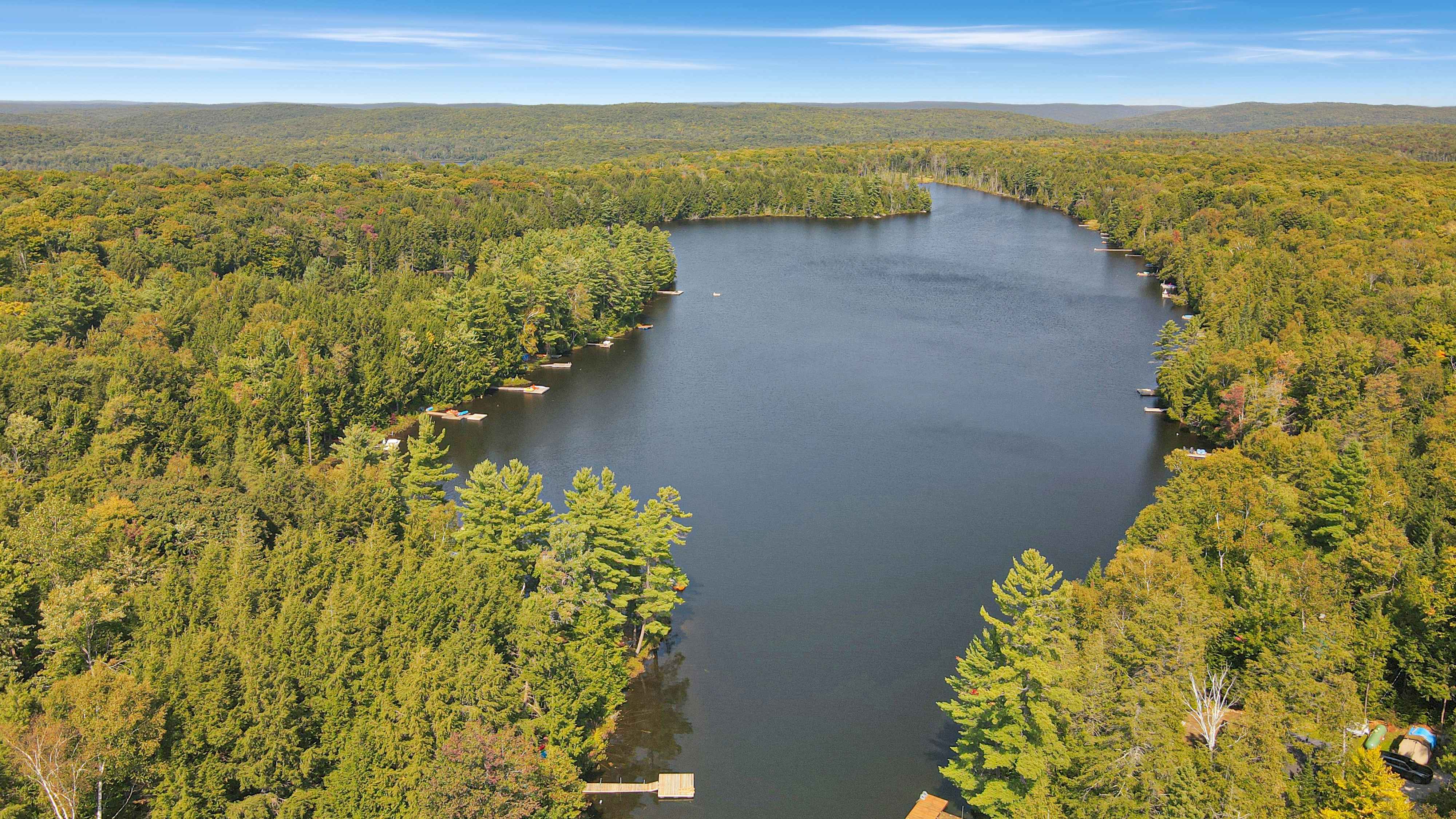 This fully winterized 3-bedroom, 1-bathroom home offers the perfect escape for all seasons. Nestled on a quiet, no-motor lake with deep, clean water right off the dock, it's ideal for swimming and fishing. The lake is stocked with rainbow trout, providing excellent opportunities for both summertime and wintertime fishing.