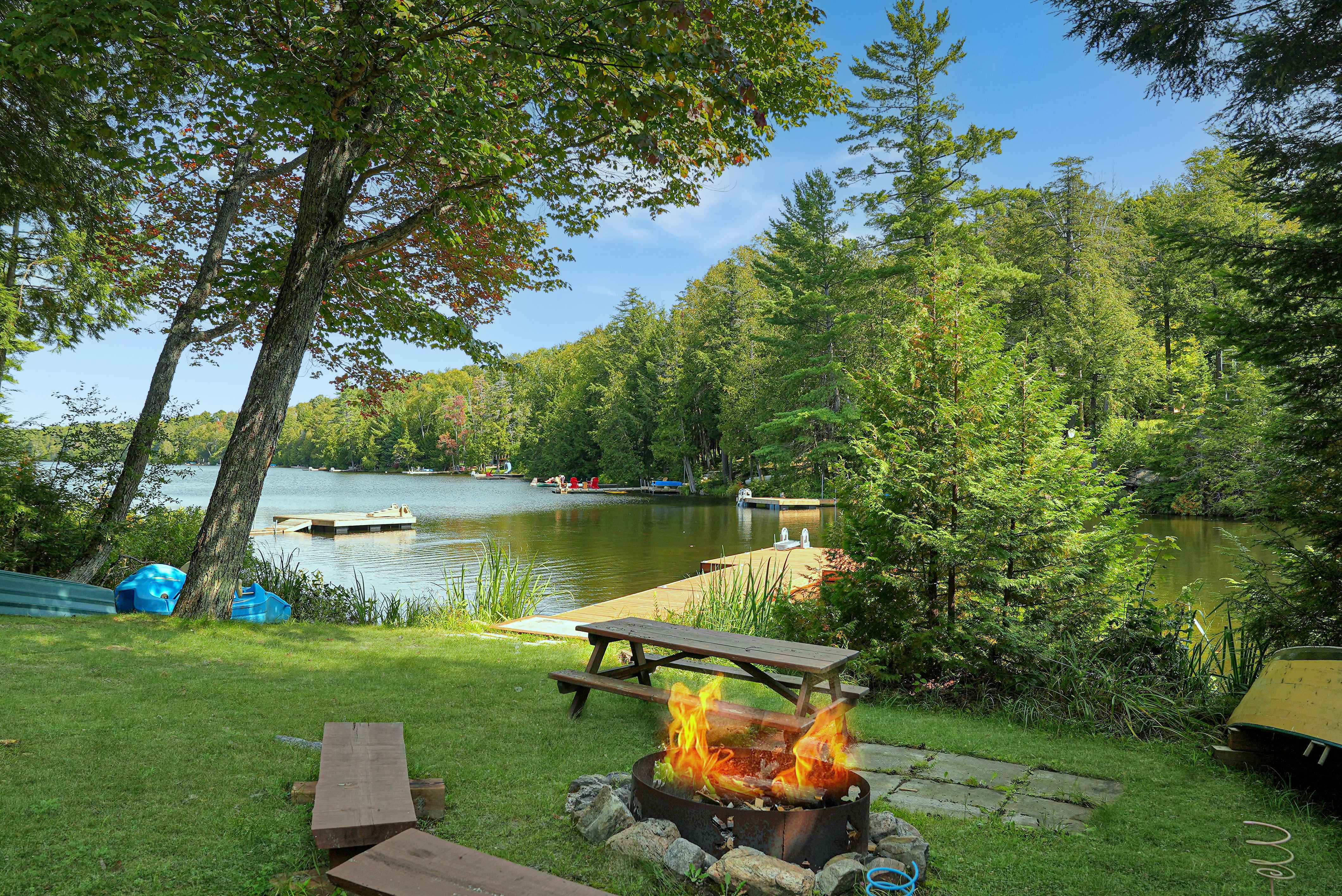 Surrounded by snowmobile and ATV trails, including the Haliburton OFSC snowmobile trail just 5 minutes away, this location is a dream for outdoor enthusiasts. Relax after a day of adventure in the outdoor sauna, hot tub, or outdoor shower—adding a touch of luxury to your lakeside retreat.