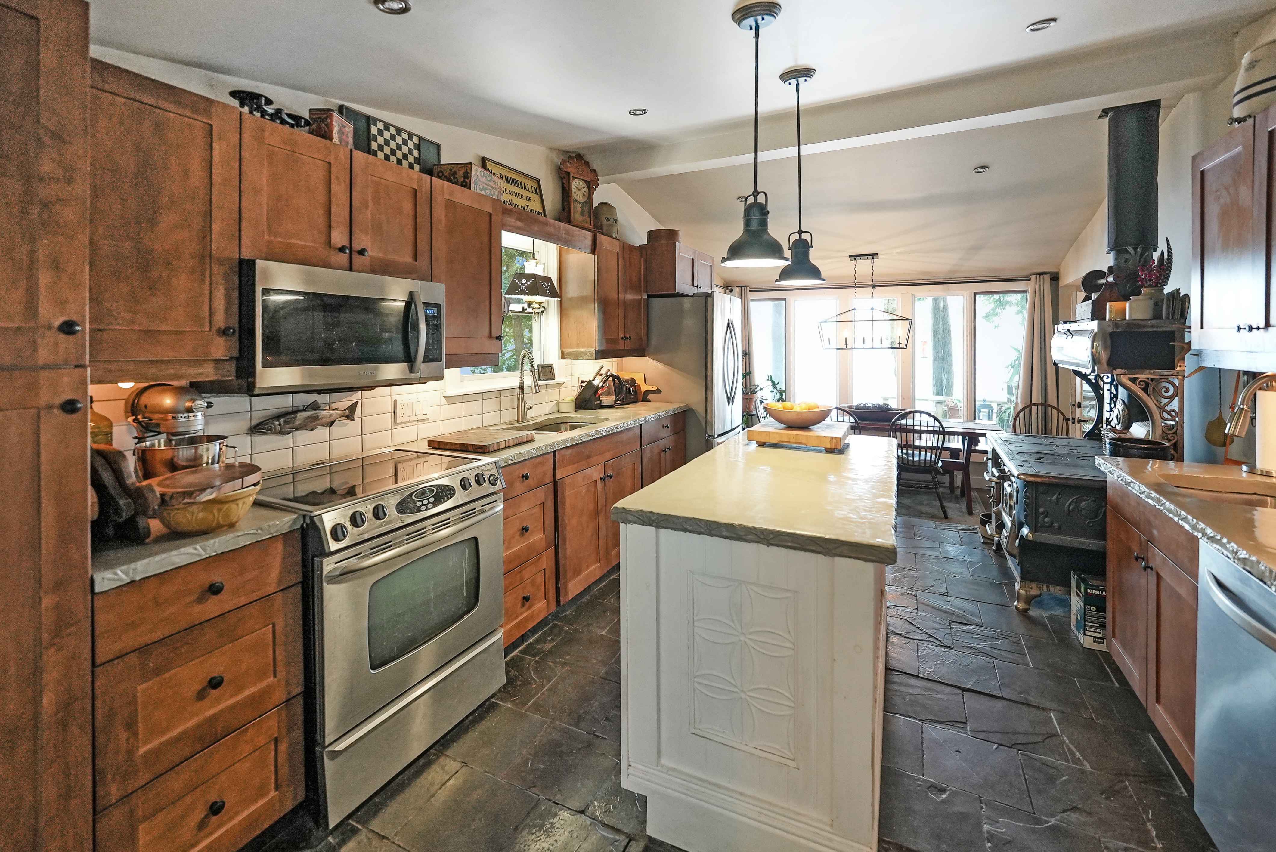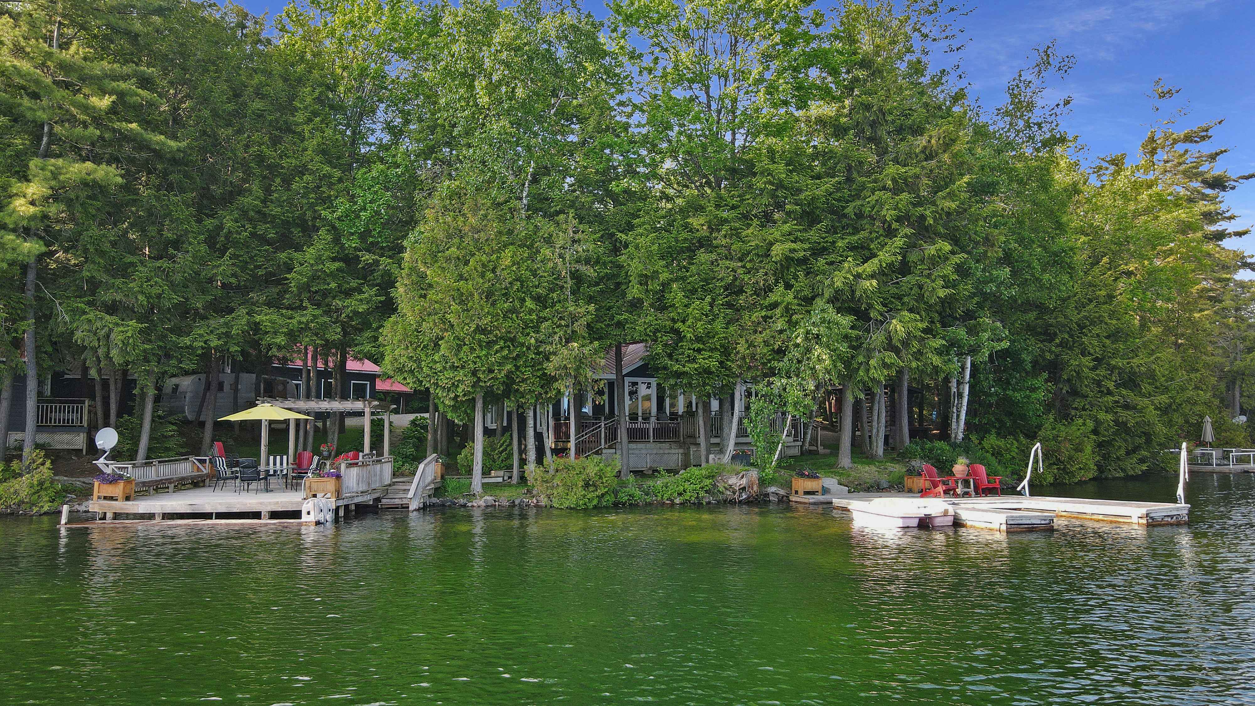 Dont miss your chance to own this private slice of paradise, on the crystal-clear, limestone-bottom shores of Salmon Lakea rare gem offering exceptional privacy and unbeatable lifestyle potential. Nestled at the end of a dead-end, year-round privately maintained road, this beautifully landscaped property features not just one, but two cottages, a massive shop with car lift, and is near crown landperfect for exploring, hiking, or simply ensuring your seclusion. The waters edge main home is a charming, fully winterized 3-bedroom, 1-bath bungalow with stunning lake views and a warm, inviting interior ideal for year-round living. The custom crafted countertops, warm cabinetry, wood burning fireplace and killer dining room views will guarantee the lakefront lifestyle vibes youre searching for. Just steps away, the secondary cottage offers extra accommodation with a bunk room and kitchenetteperfect for guests, extended family, or summer rentals. Outdoors, the property is a showstopper: completely level lot, two private docks with extreme privacy, a delightful kids bunkie, and extensive gardens with professional stonework and landscaping that blend seamlessly into the natural surroundings. The impressive garage, complete with a car lift, is a rare findideal for hobbyists, mechanics, or storing your toys. Whether youre looking for a tranquil year-round residence, a multi-family retreat, or a unique investment opportunity, this exceptional offering on Salmon Lake checks every box. Clean, deep swimming, excellent boating, and the serenity of crown landthis is cottage country living at its finest.
