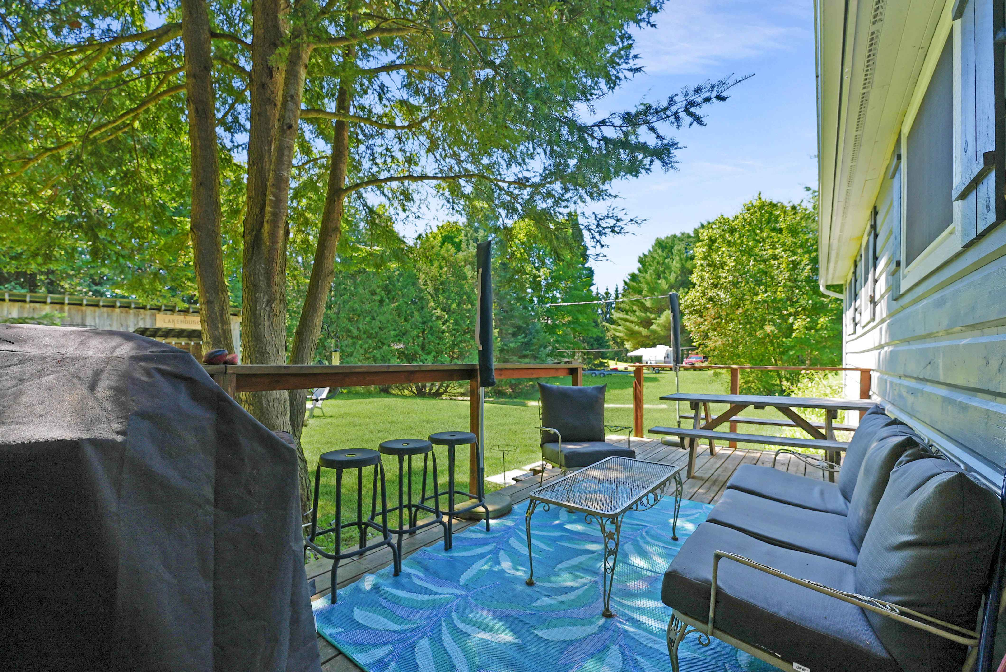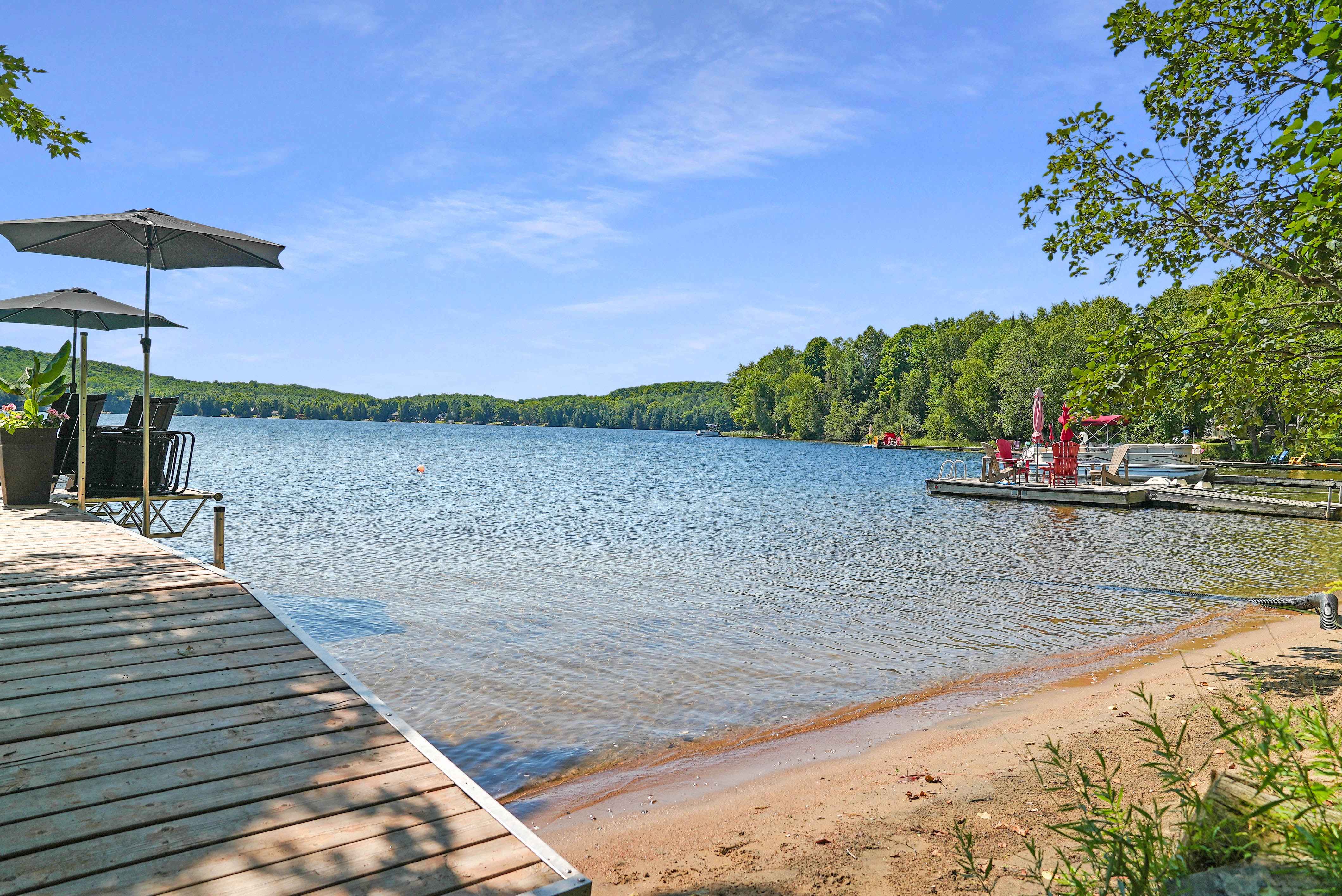 Ideal for families, the property boasts a child-friendly wade-in sand beach, with deeper waters just off the dock for swimming. The backyard provides additional indoor-outdoor living space, where you can spend your afternoons and evenings gathered around the campfire, creating memories that will last a lifetime.