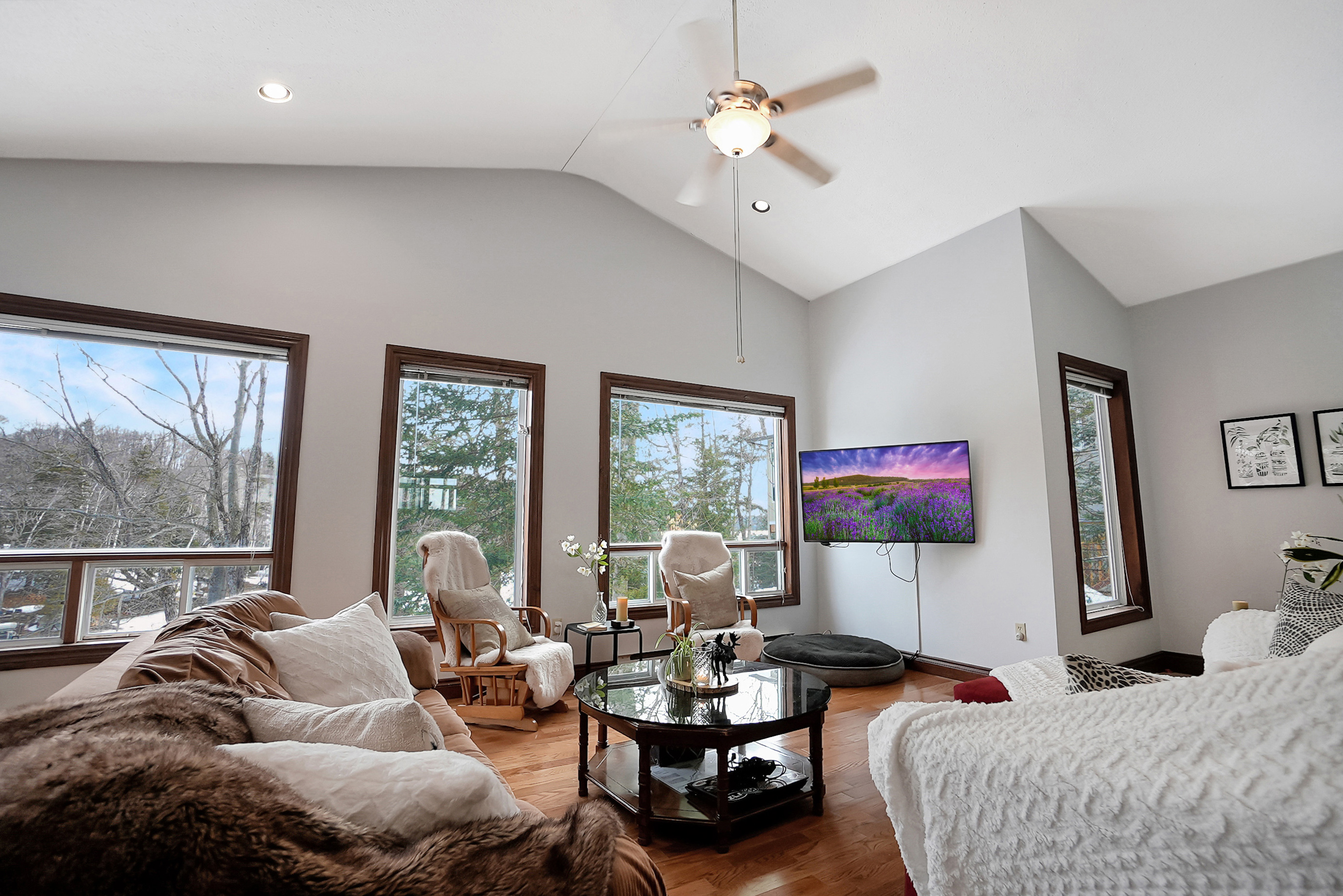 The cottage boasts three bedrooms and one four-piece bathroom, comfortably accommodating up to six guests. Each bedroom is beautifully appointed, and the bathroom is immaculate and well-maintained.