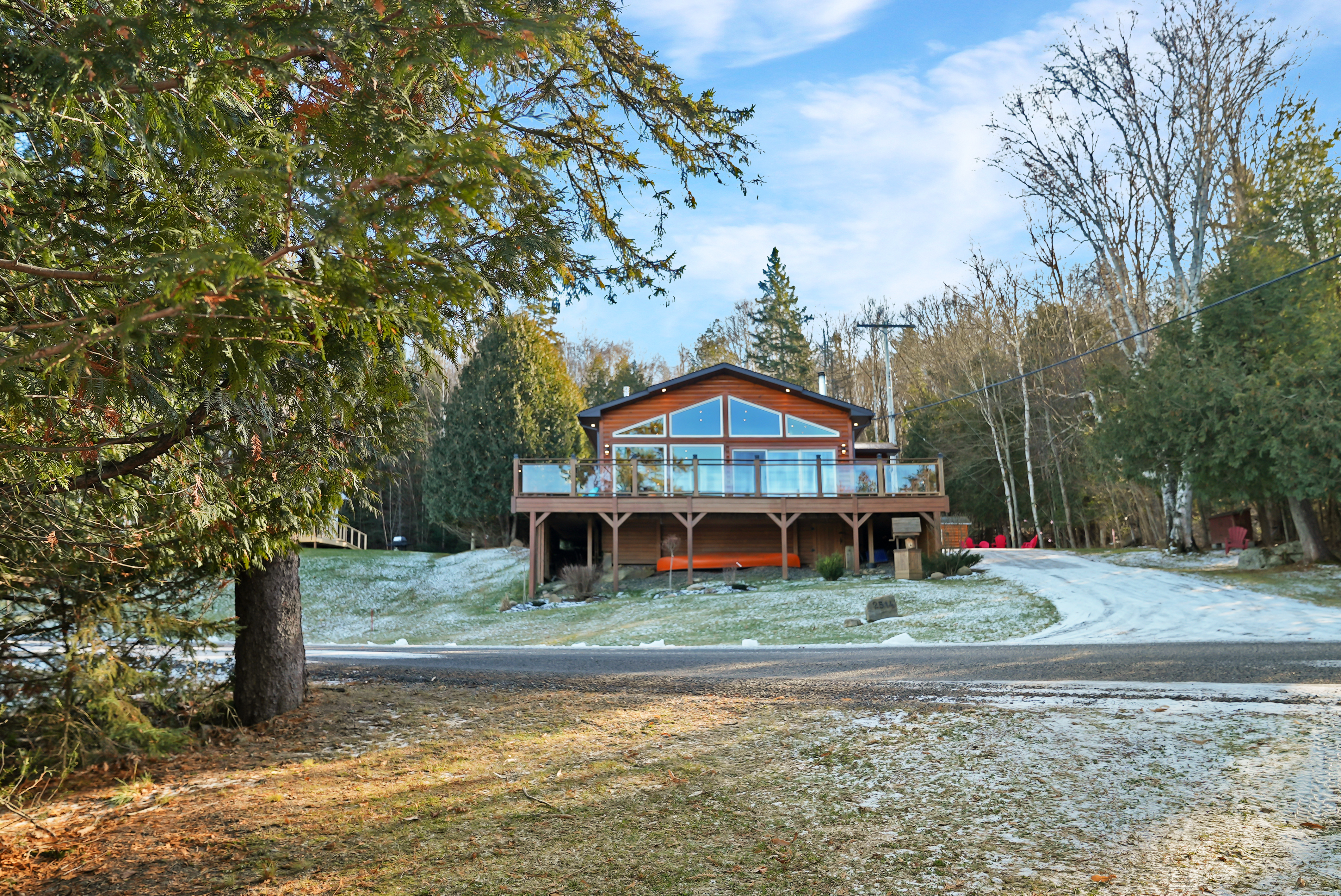 The sought-after location of this retreat is just five minutes from Pinestone Golf Course and Blairhampton Golf Course, and perfectly positioned between Haliburton and Minden. Immerse yourself in the beauty of nature while enjoying the comforts of a well-maintained and thoughtfully designed lakefront cottage close to all conveniences with premium road access.