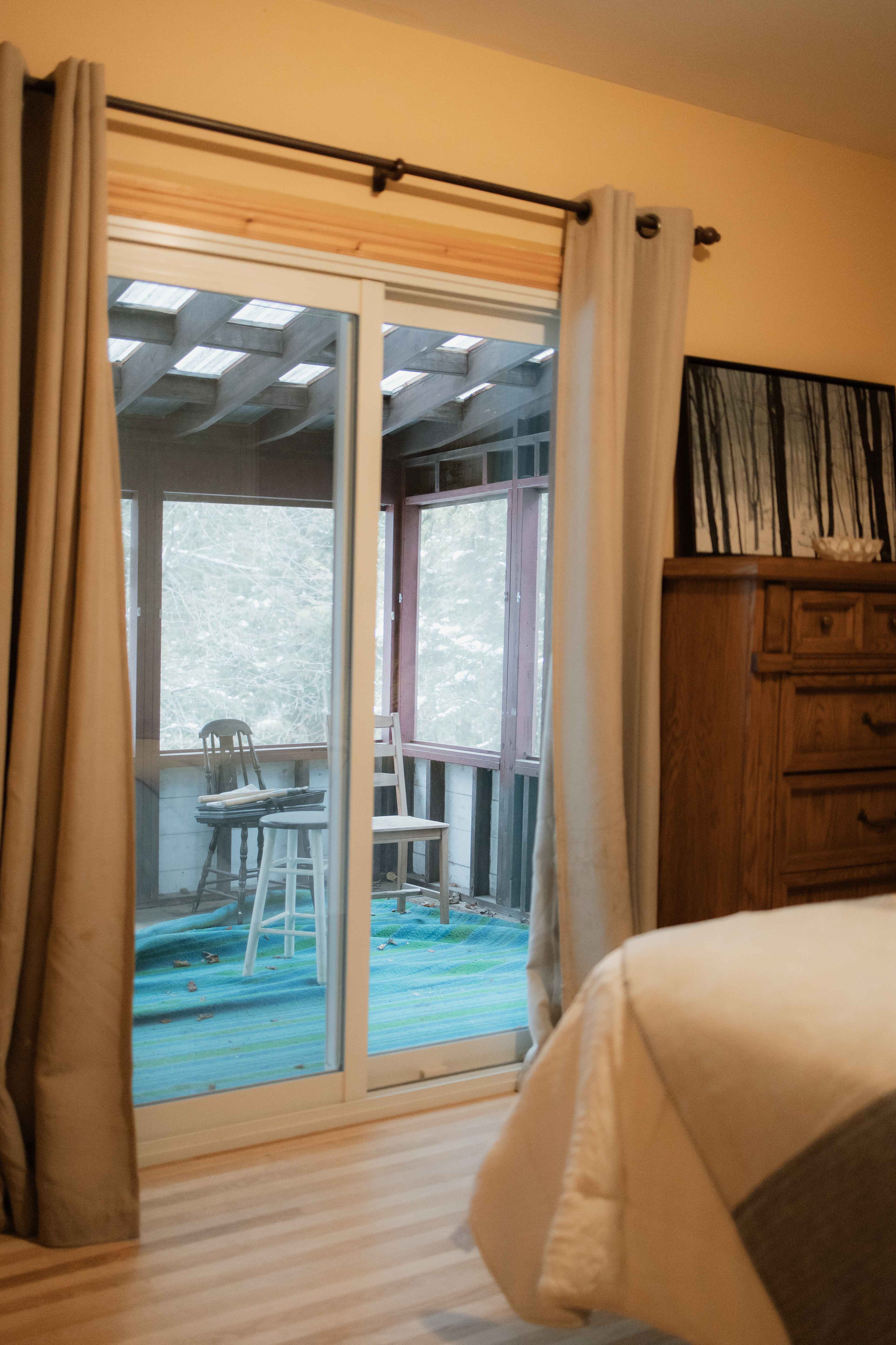 Main Unit: Charming 4-bedroom, 2-bathroom space, perfect for a large family. Features include a cozy wood-burning fireplace and a screened-in covered back porch for year-round enjoyment.