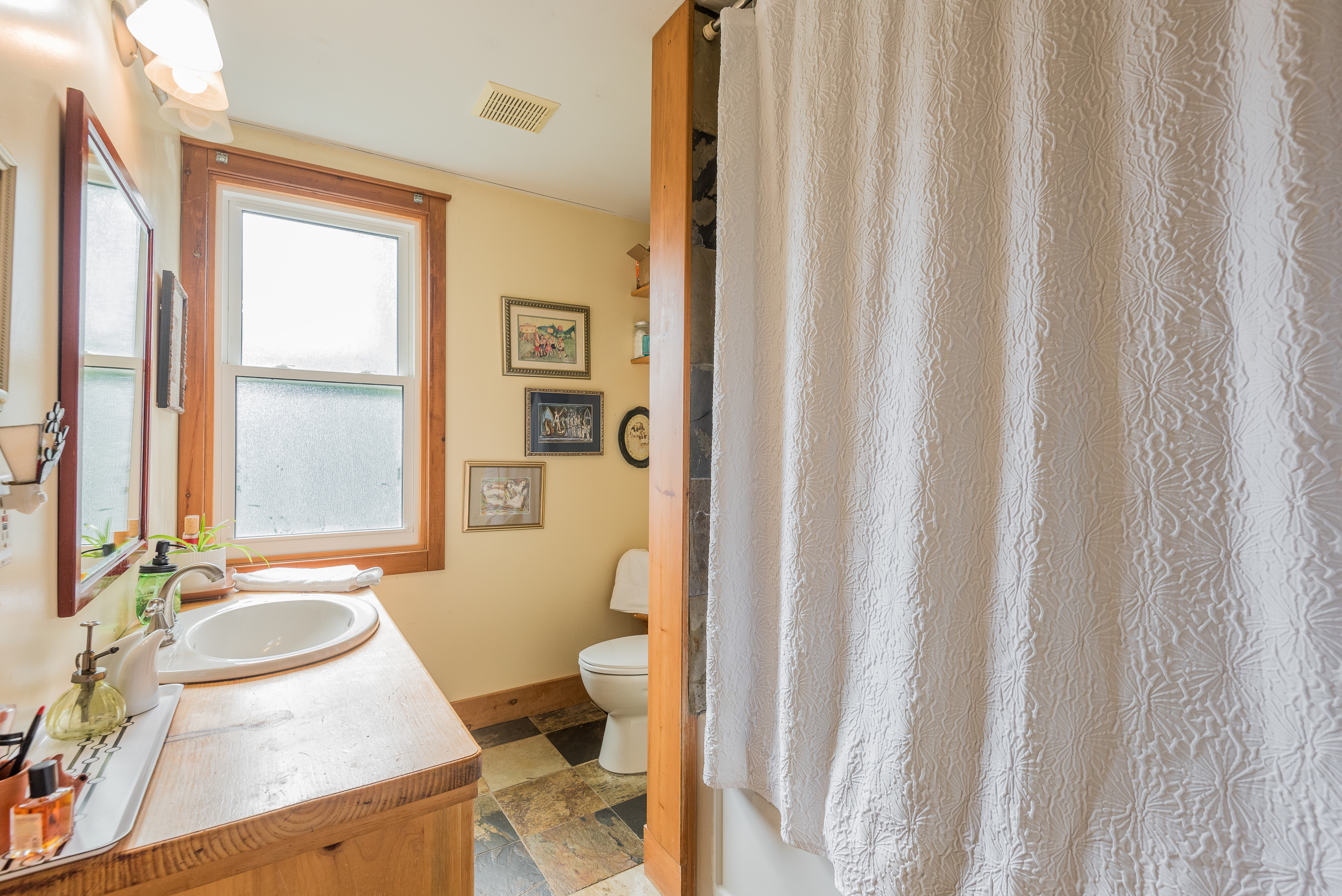 Stay warm and cozy on crisp fall and winter days with the woodstove, which keeps the home toasty, while the bright sunporch provides a perfect spot to relax and soak up sunshine on warmer days. The home also boasts a spacious foyer with plenty of storage, main floor laundry with room for customization, and a separate workshop ideal for hobbies or DIY projects.