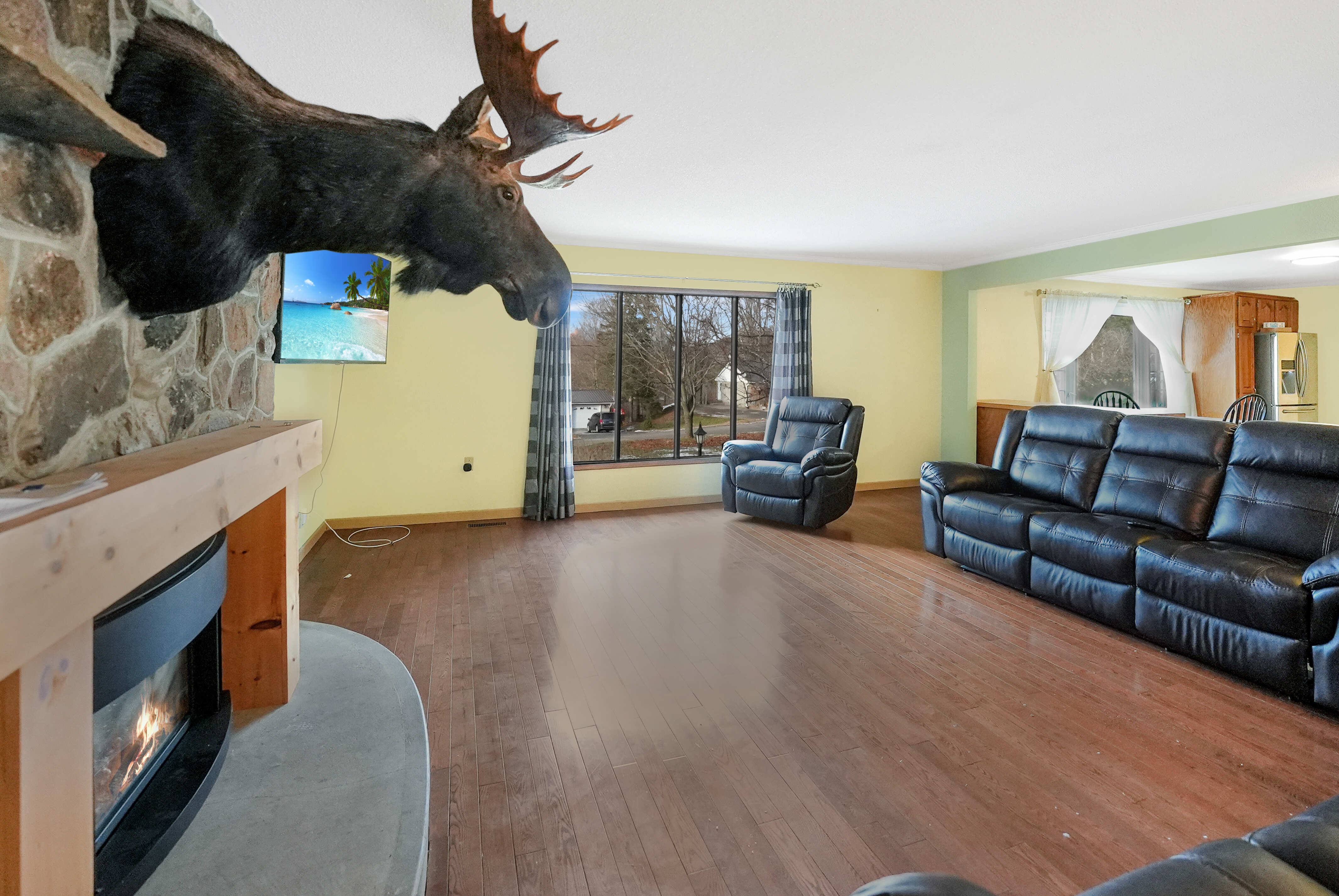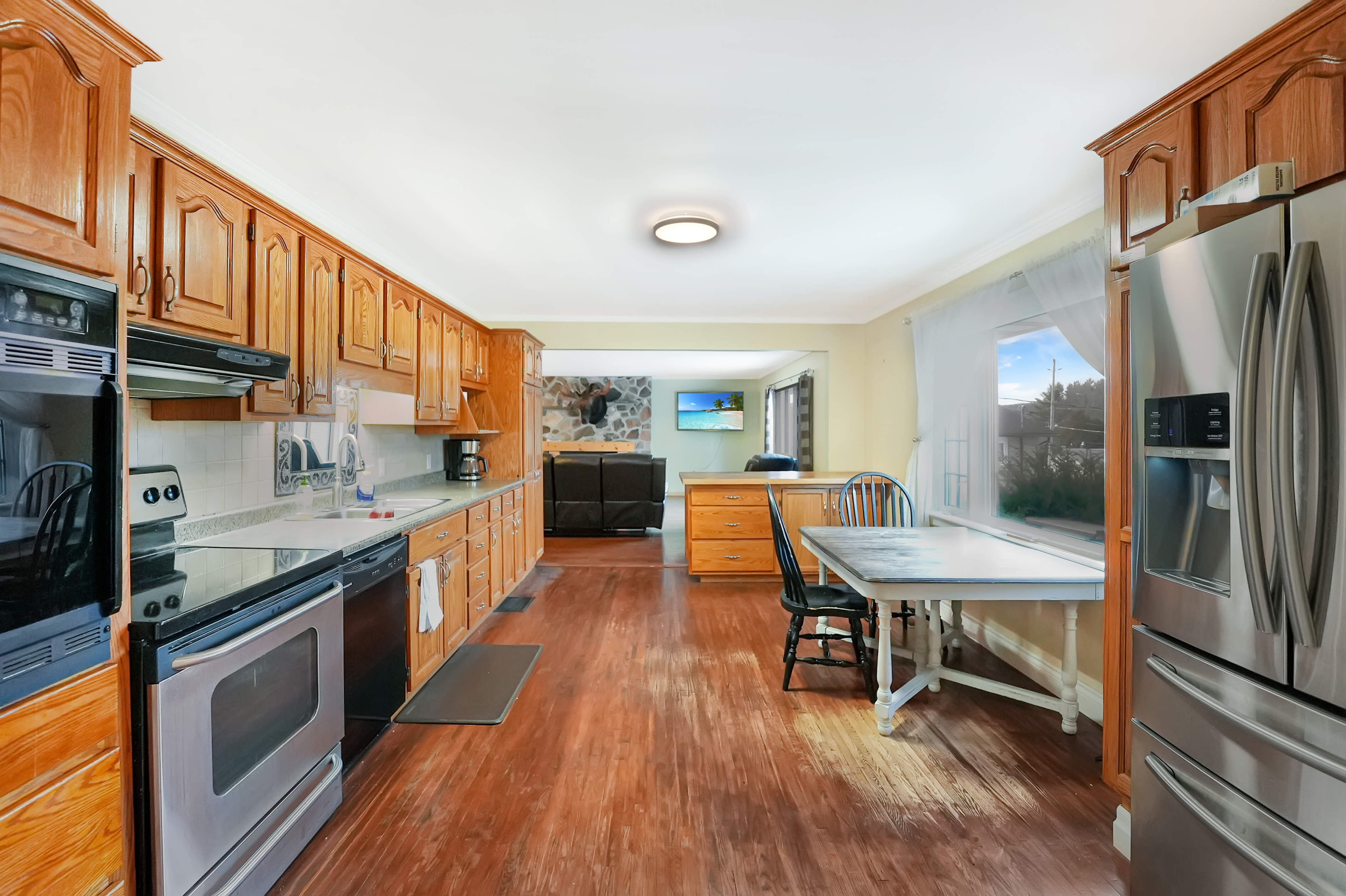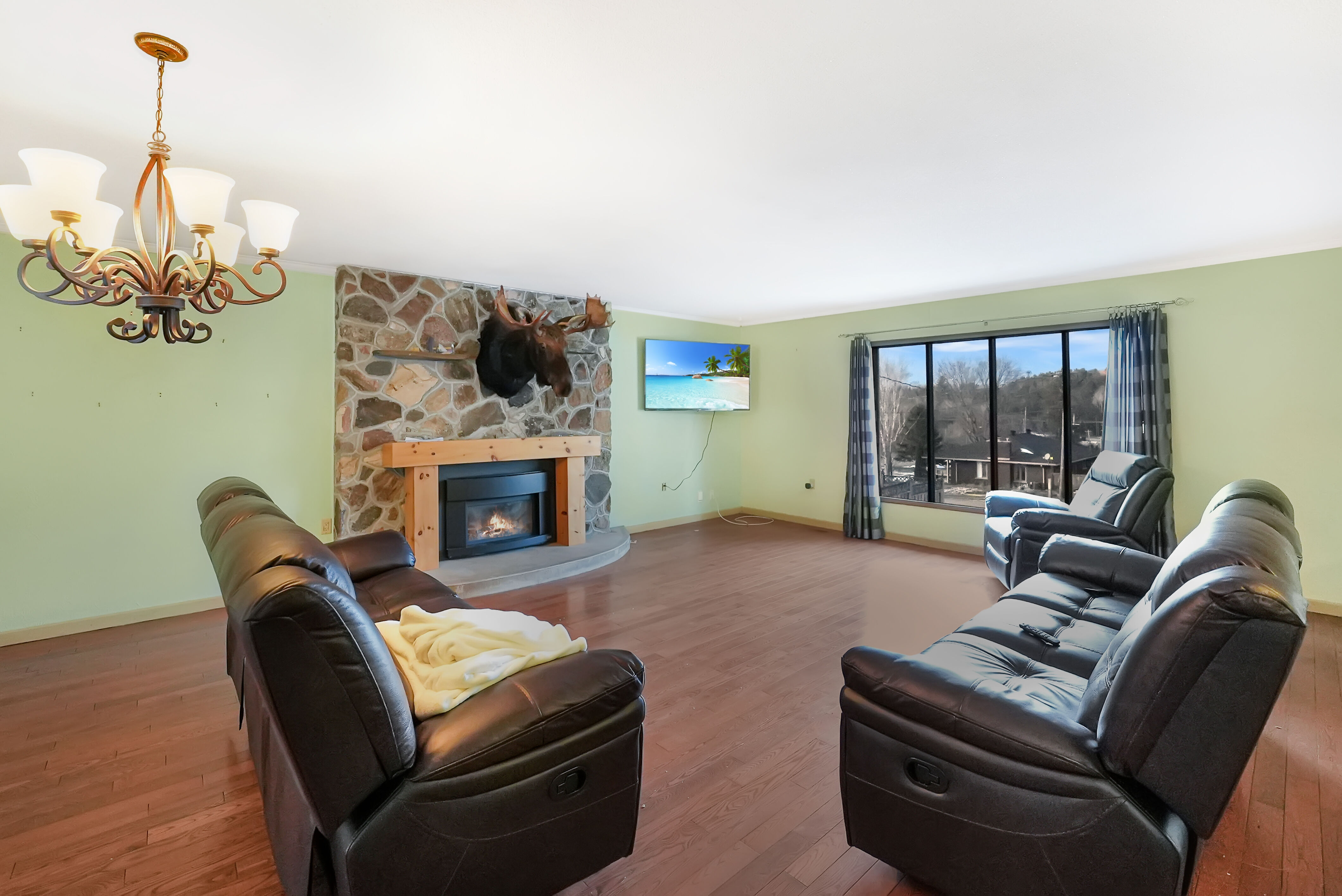 The finished lower level adds even more living space, complete with a rec room, additional bedroom, and a 3-piece bath. Propane forced-air furnace and two propane fireplaces—one on each level—for efficient and comfortable heating.